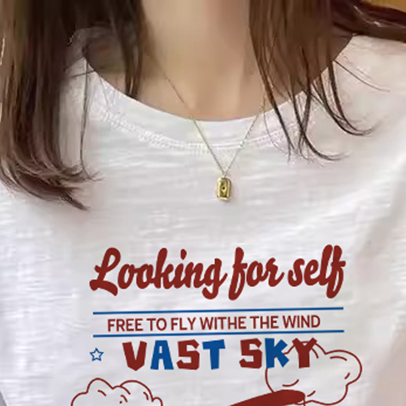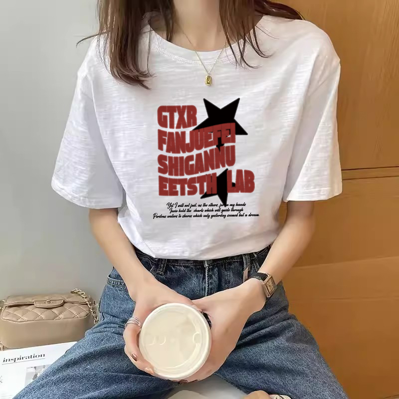 夏季圆领白色纯棉短袖t恤女2024新款竹节棉胖mm显瘦遮肚宽松上衣