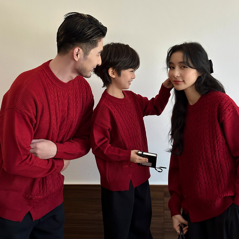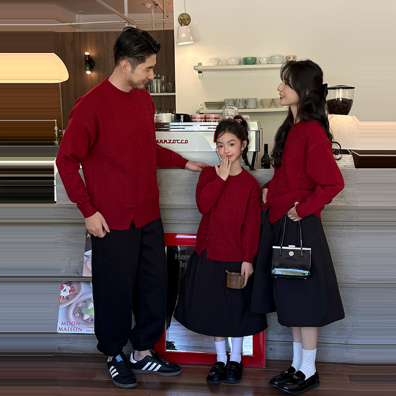 亲子装全家福2026新年一家三口四口母女母女装过年红色毛衣拜年服