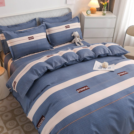 全棉简约四件套斜纹床单磨毛被套纯棉加厚学生宿舍床上用品被罩