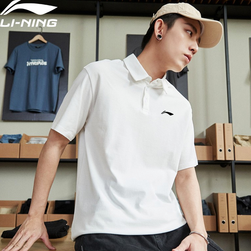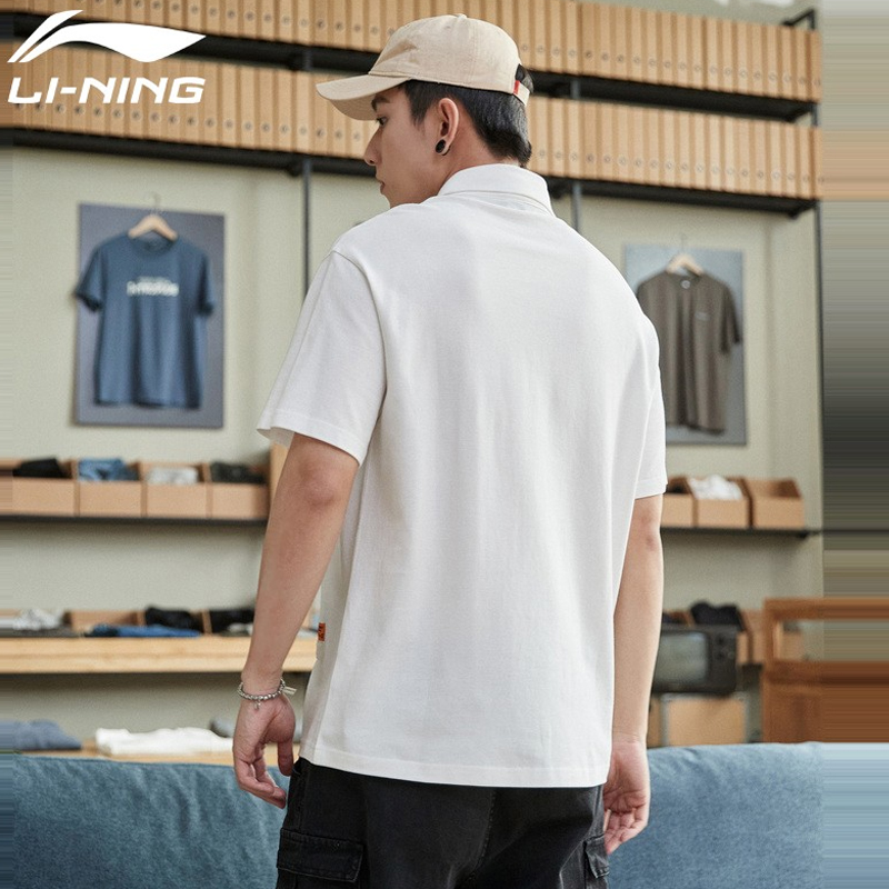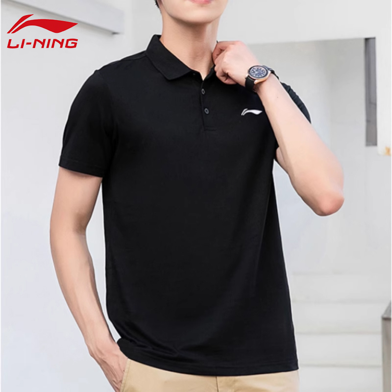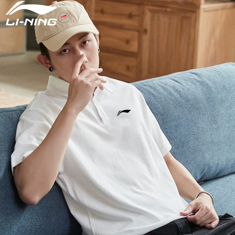 李宁短袖POLO男2025夏季薄款休闲纯棉翻领纯色文化衫运动半袖T恤