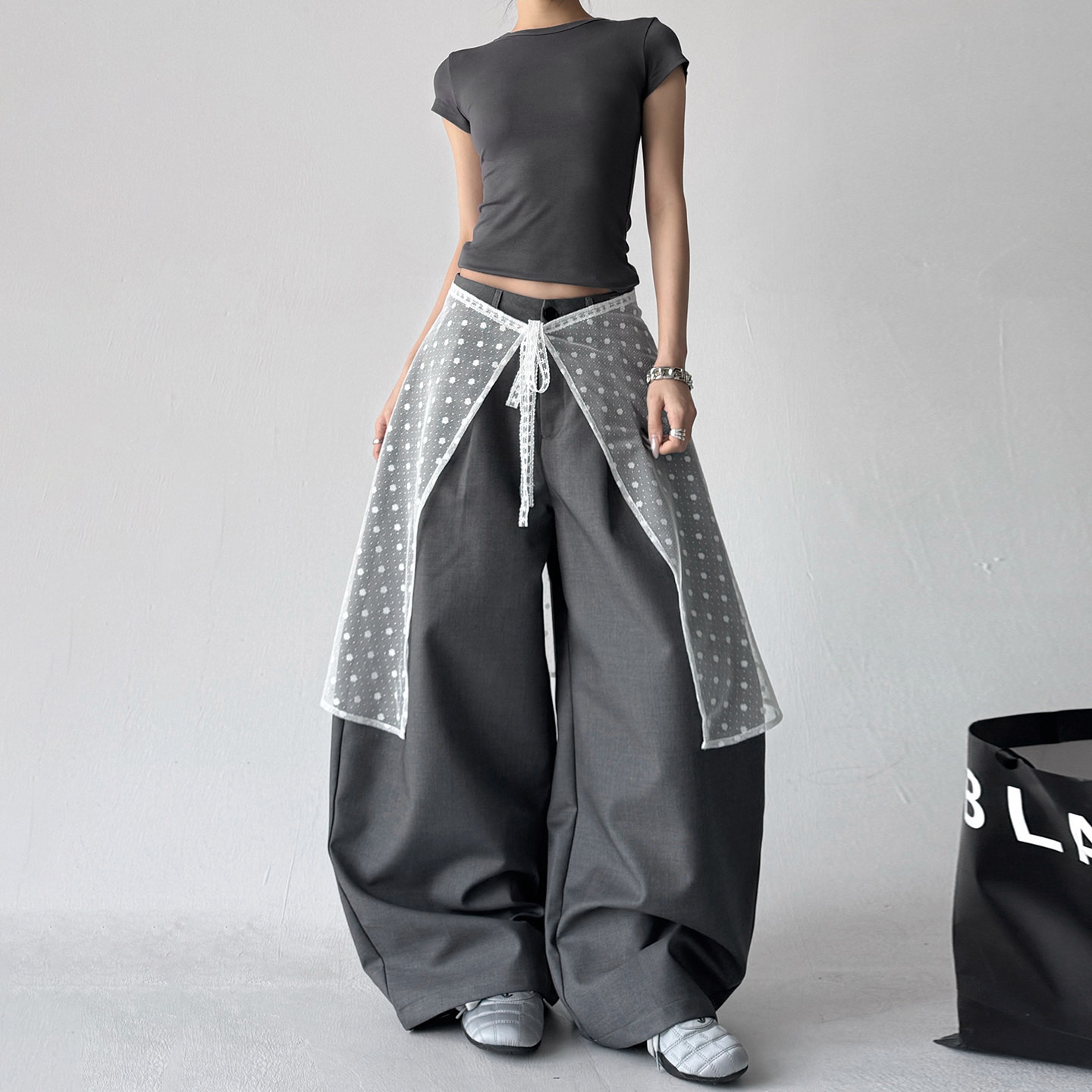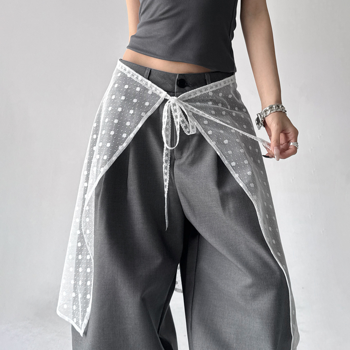 韩国屁帘蕾丝半身裙女一片式网纱裙帘下摆日系叠穿裙罩白色短裙子