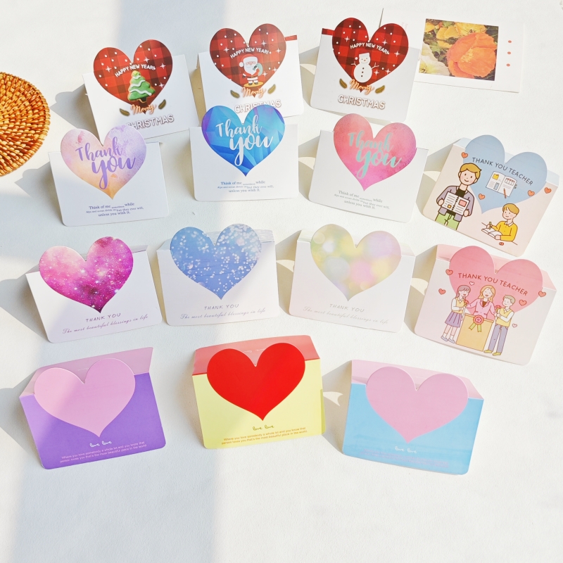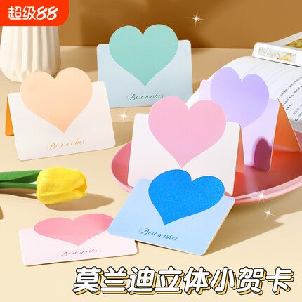 莫兰迪爱心贺卡心形立体贺卡明信片小卡片纸手写愿卡花店留言卡片