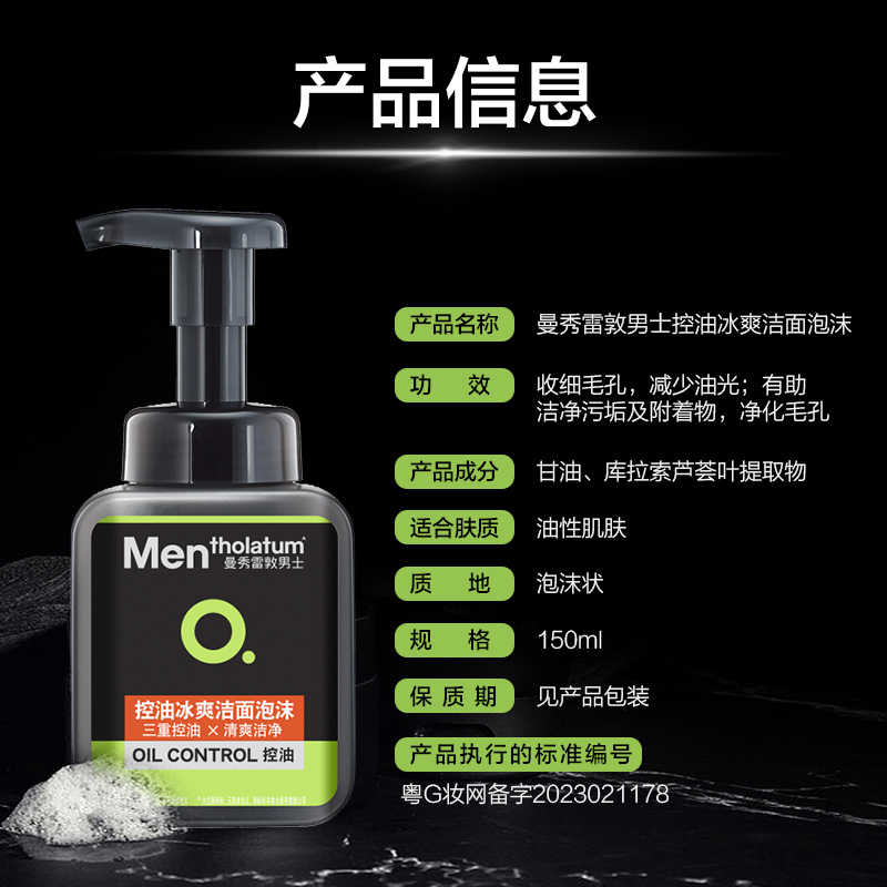 曼秀雷敦男士洗面奶控油冰爽洁面泡沫150ml清爽抗痘深层清洁面乳