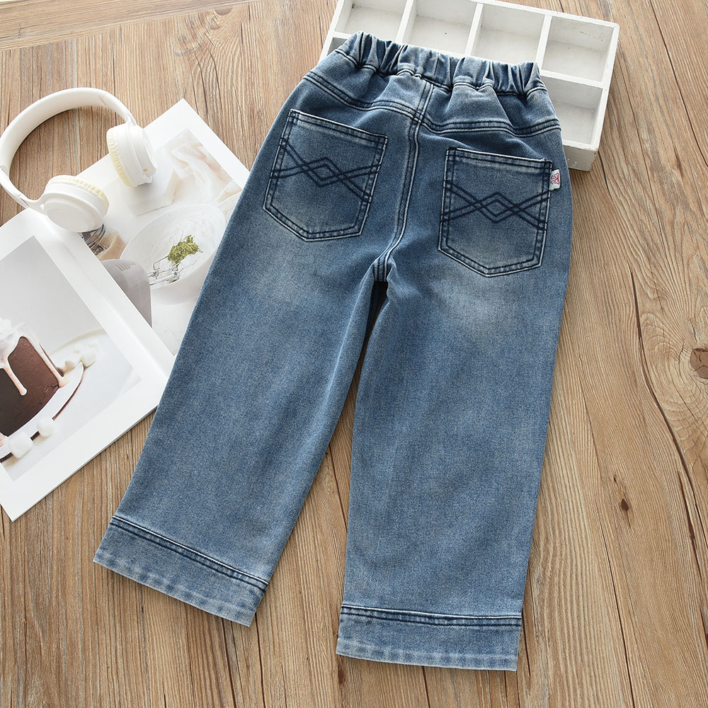 洋气童装2025春款儿童女童弹力牛仔裤宝宝中大童阔腿直筒裤子休闲
