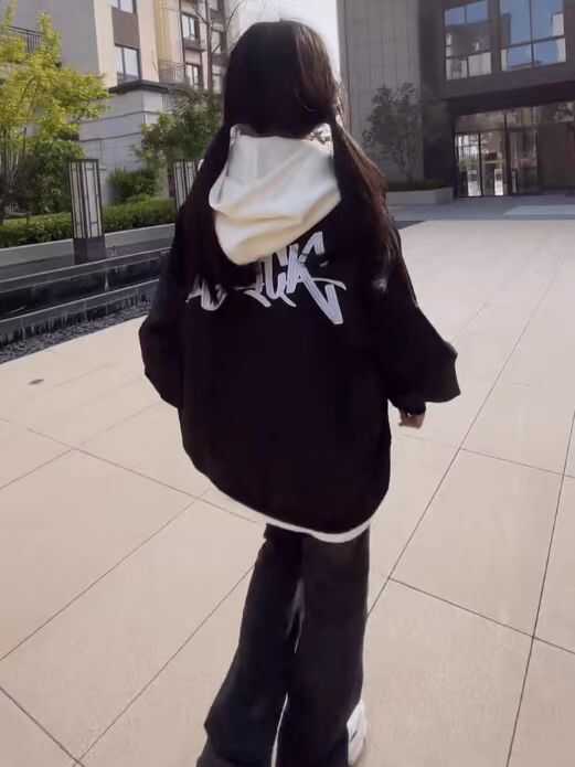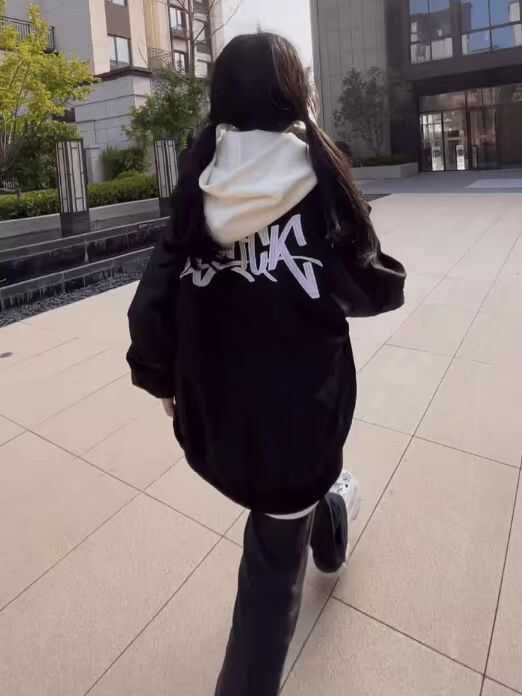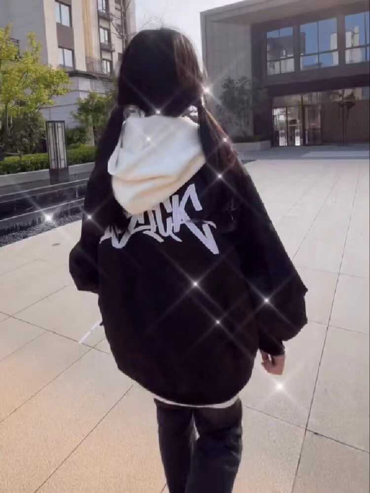 国潮牌高街飞行员夹克女秋季薄款vibe棒球服黑色简约拉链美式外套