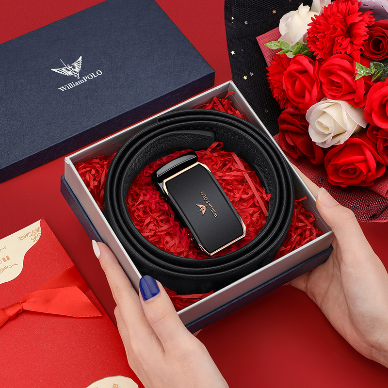 保罗正品皮带男士真皮自动扣头层纯牛皮腰带高档百搭年轻人裤带潮