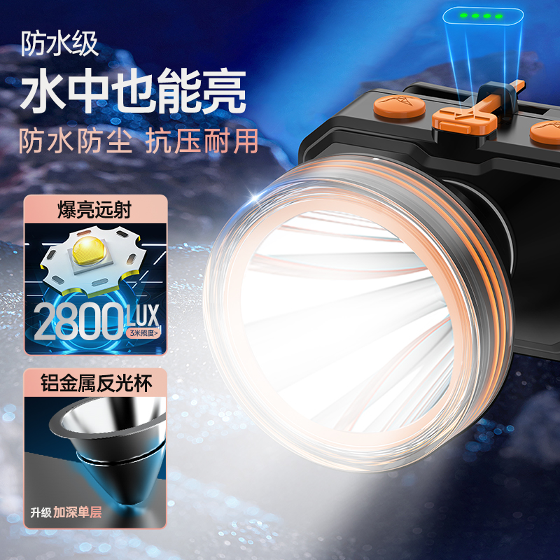 【防水】雅格头灯强光远射夜钓