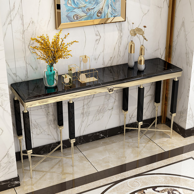 范思哲轻奢过道玄关进门简约客厅创意不锈钢装饰柜设计师沙发背几