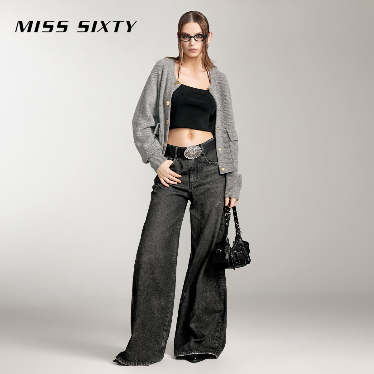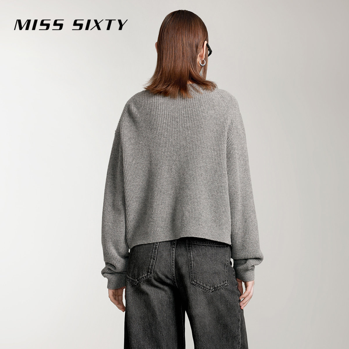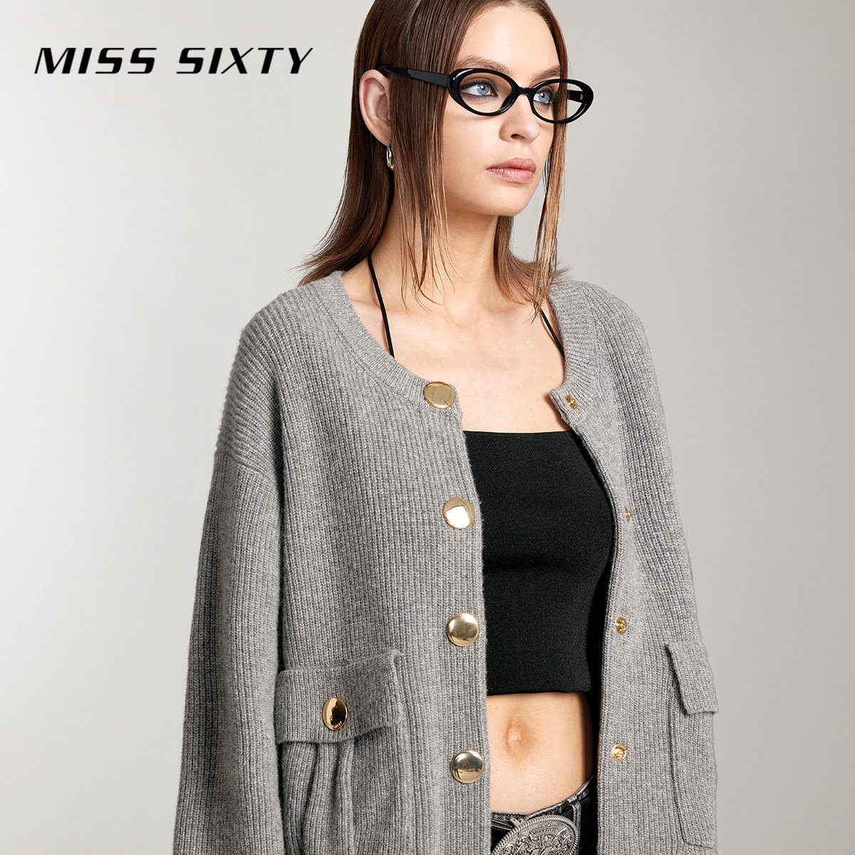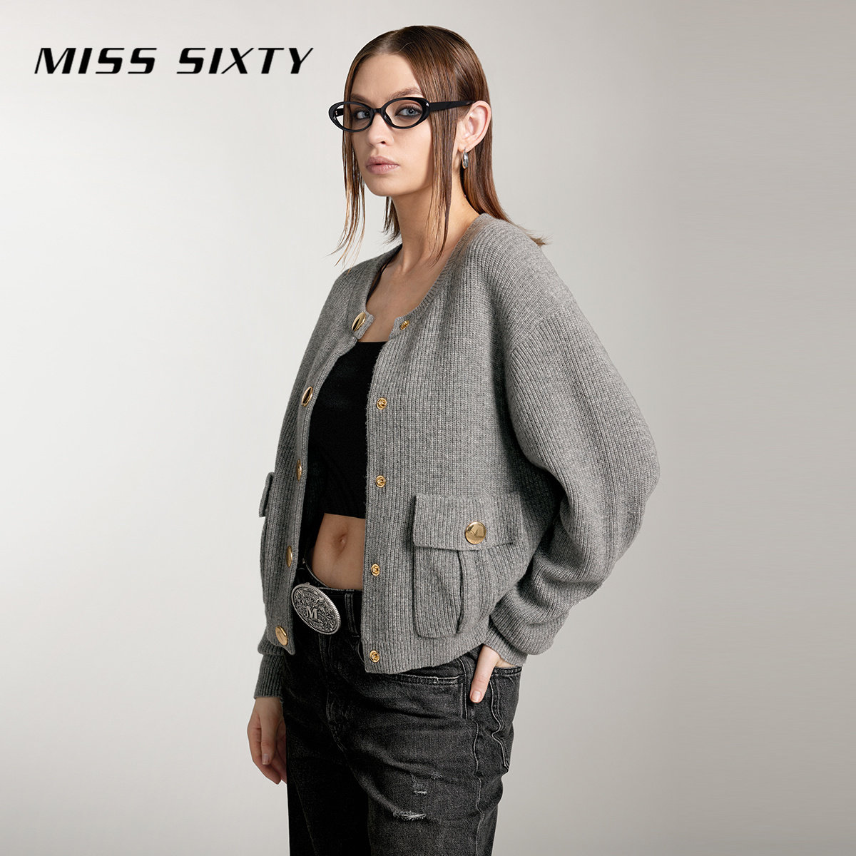 Miss Sixty绵羊毛针织衫外套女圆领纽扣短款简约小香风毛衣开衫