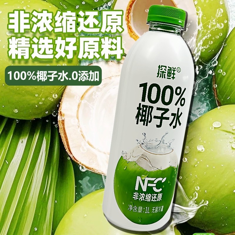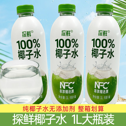 探鲜椰子水NFC100%椰子水新鲜纯椰青水0脂无添加电解质果汁饮料1L