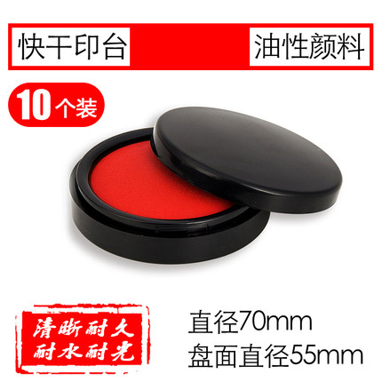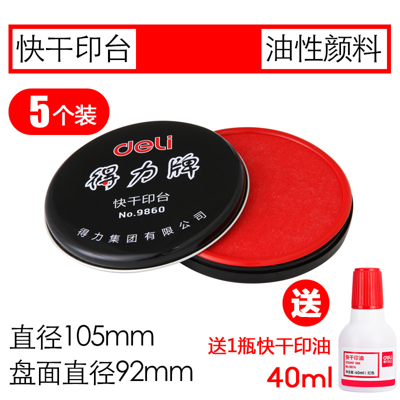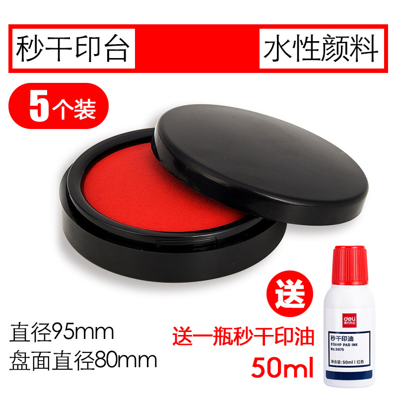 得力印泥红色印台大号印泥盒快干圆形印油按手印小号黑色银行印章油蓝色方形印尼财务办公用品婴儿足底脚掌印