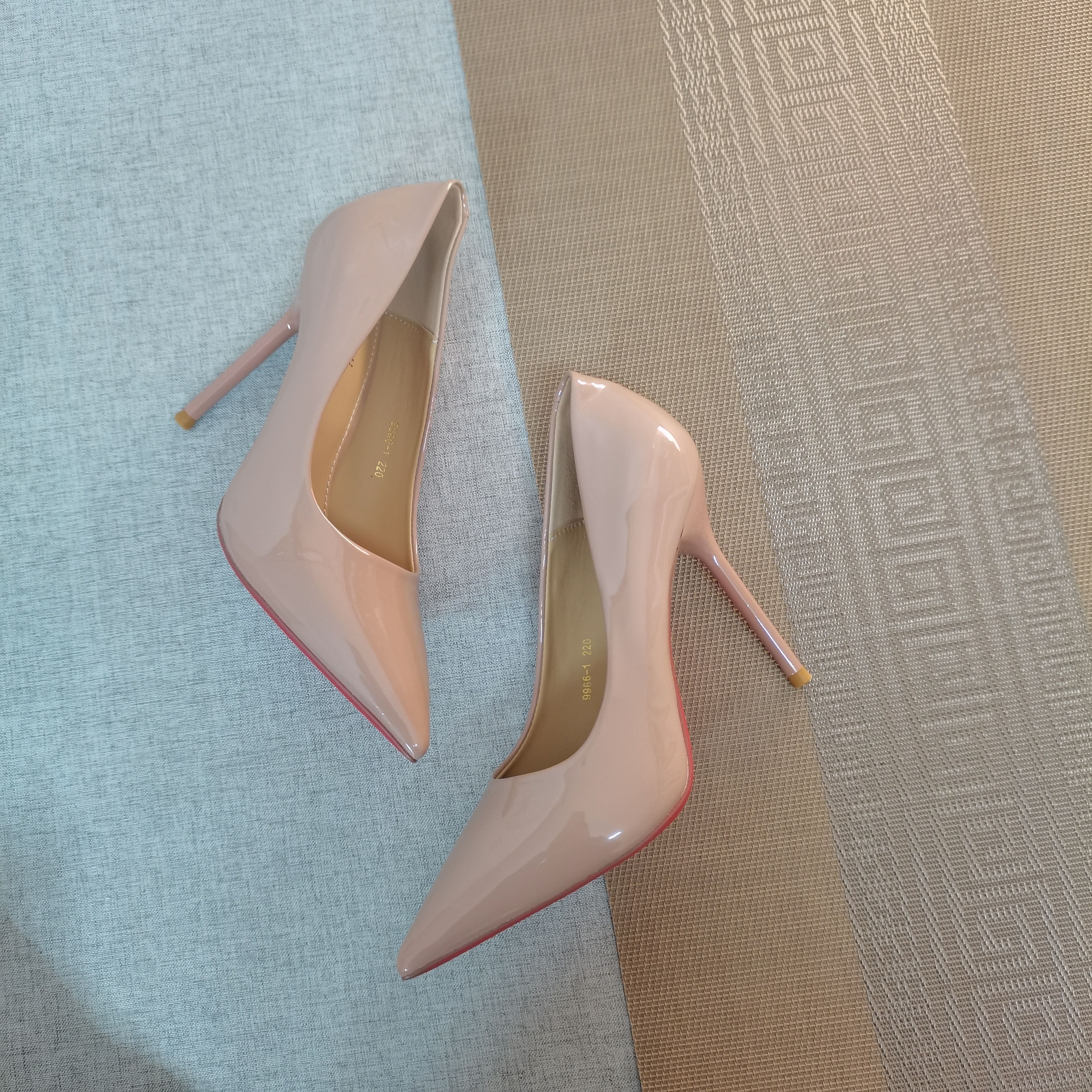 2025新尖头浅口超高跟红底单鞋简约漆皮气质百搭舒适年会女模特鞋