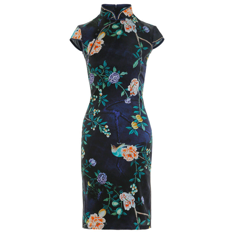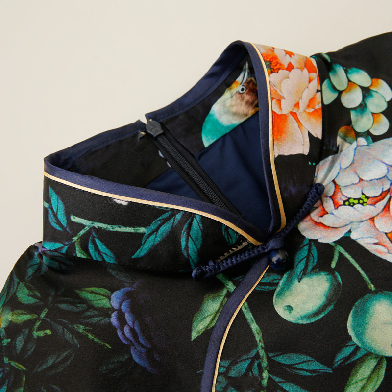 木真了复古风新品花鸟半袖旗袍裙