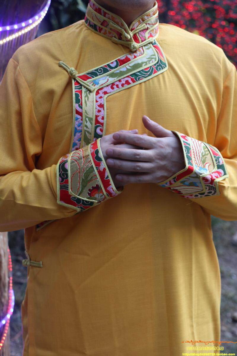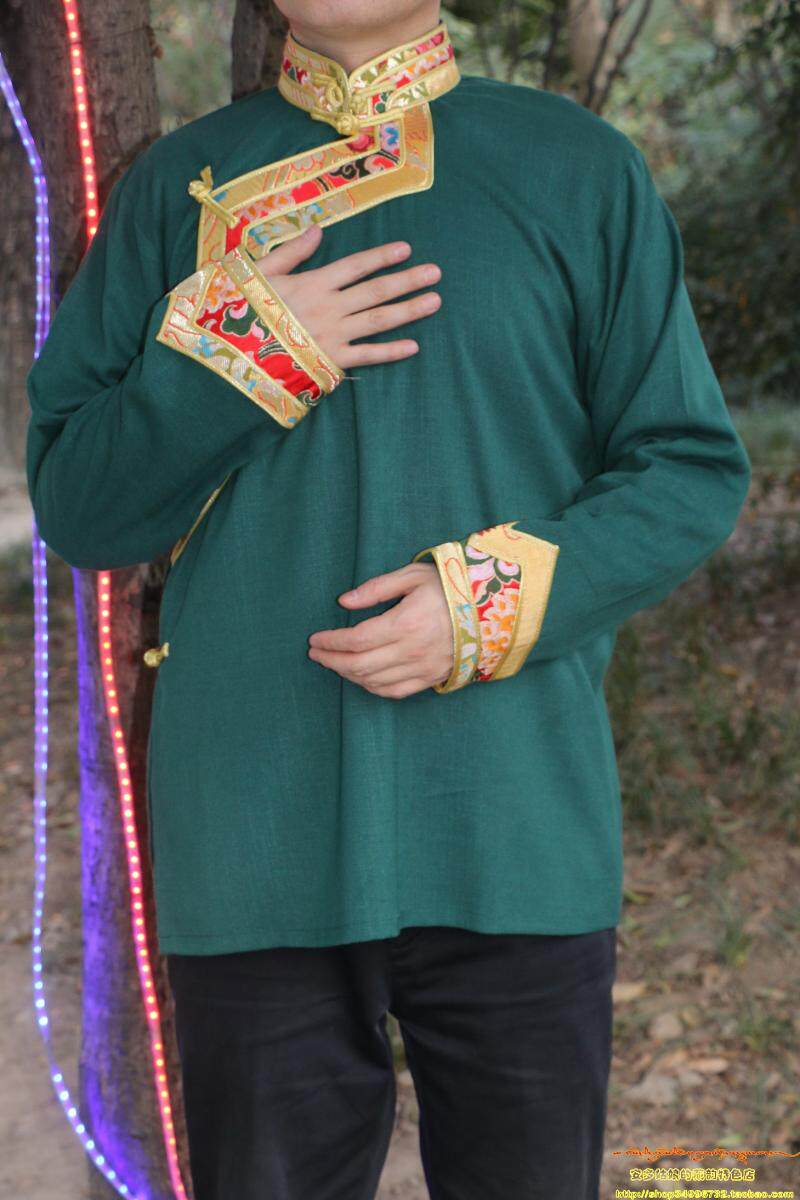 西藏传统男装棉麻手工扣金边棕黑橙黄绿男女藏服藏装上衣衬衫包邮