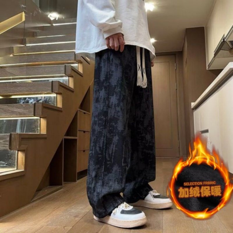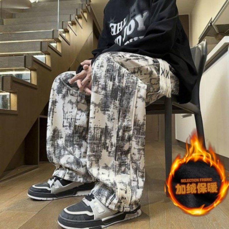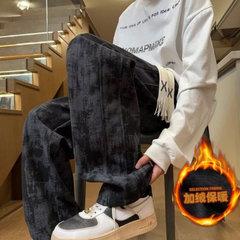 美式高街百搭休闲裤情侣秋冬季潮牌扎染宽松复古直筒运动长裤加绒