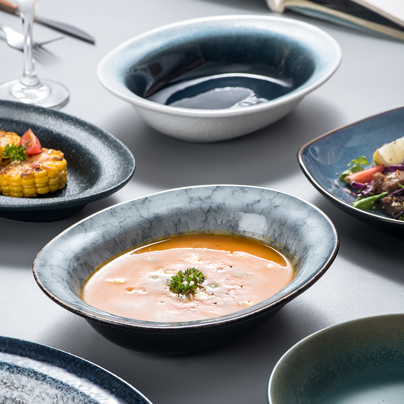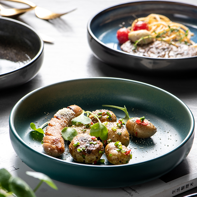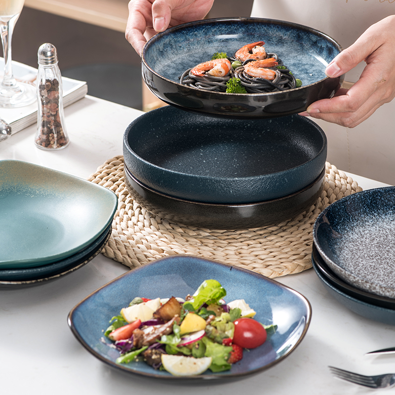 方盘陶瓷家用碟子菜盘高级感轻奢日式西餐点心旦形汤盘深盘凉菜盘