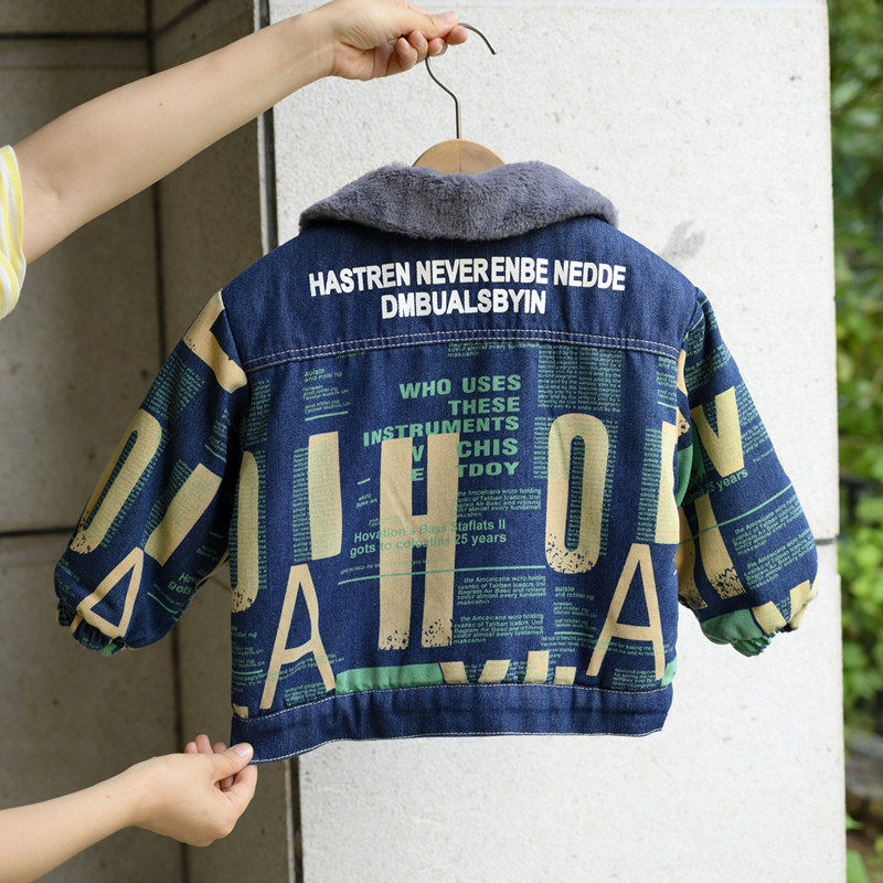 男童加绒牛仔外套韩版儿童洋气加厚夹克上衣小童秋冬装宝宝潮衣服
