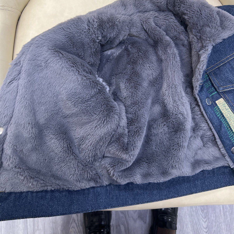 春秋新款大毛领加厚加绒牛仔外套女短款长袖弹力夹克棉衣百搭