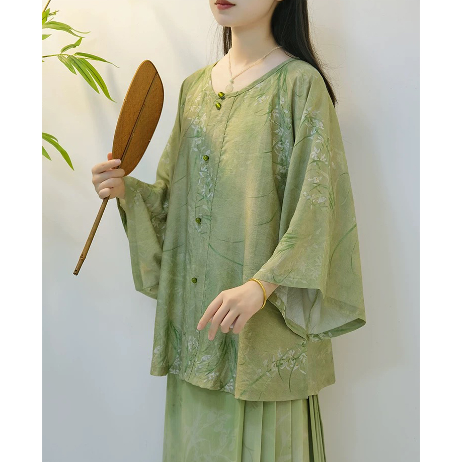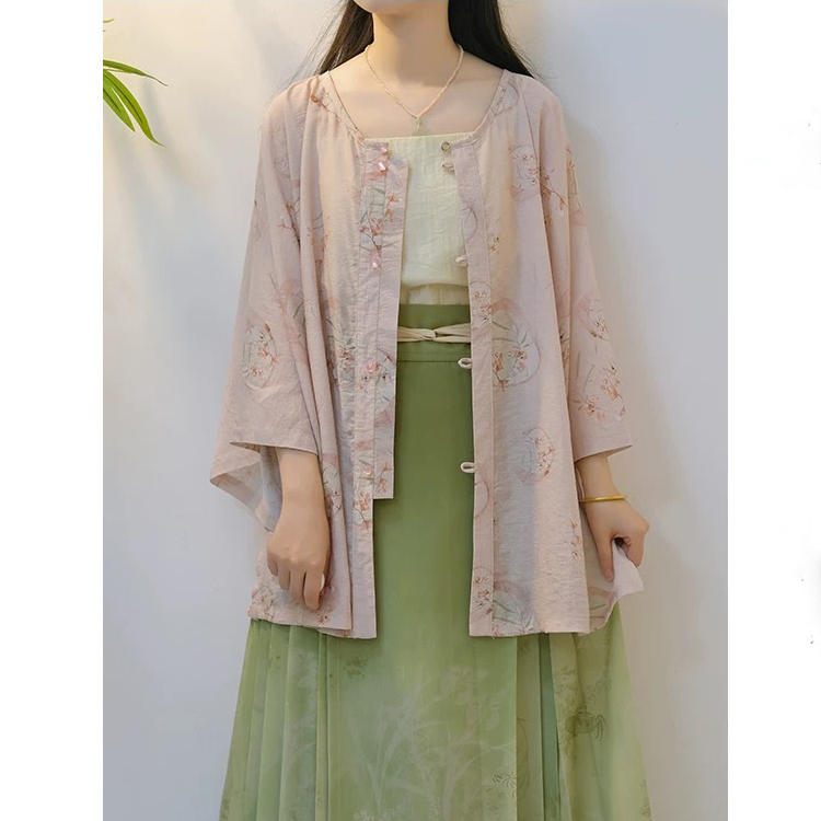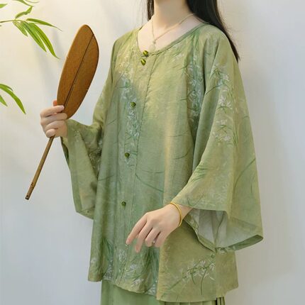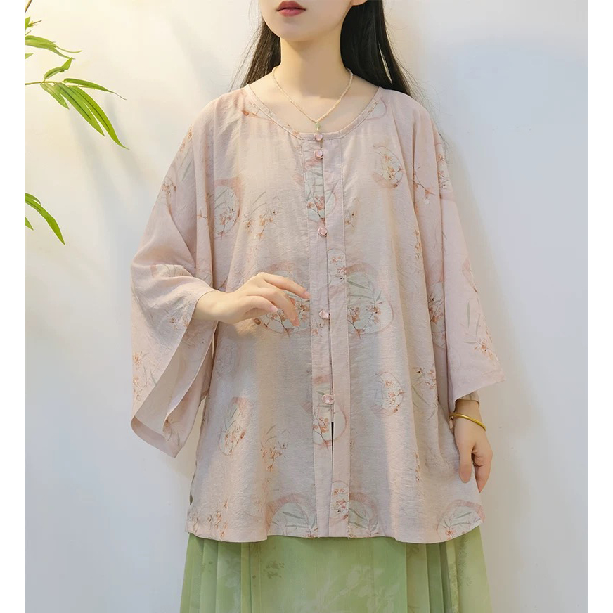 复古国风苎麻九分袖衬衫女夏季新款宽松显瘦超好看棉麻防晒衫上衣