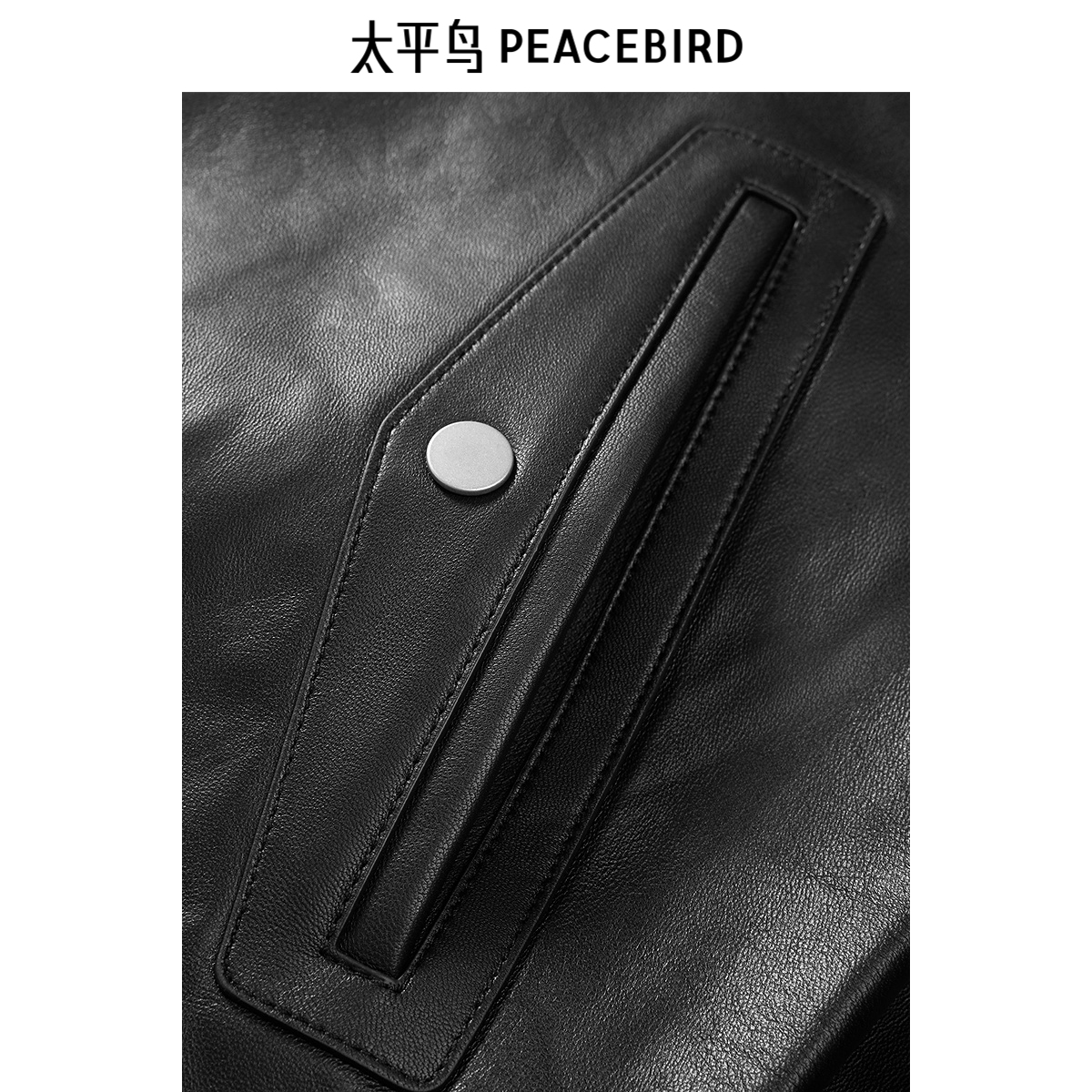 【商场同款】太平鸟男装老钱风质感皮衣夹克B1BDE4F05