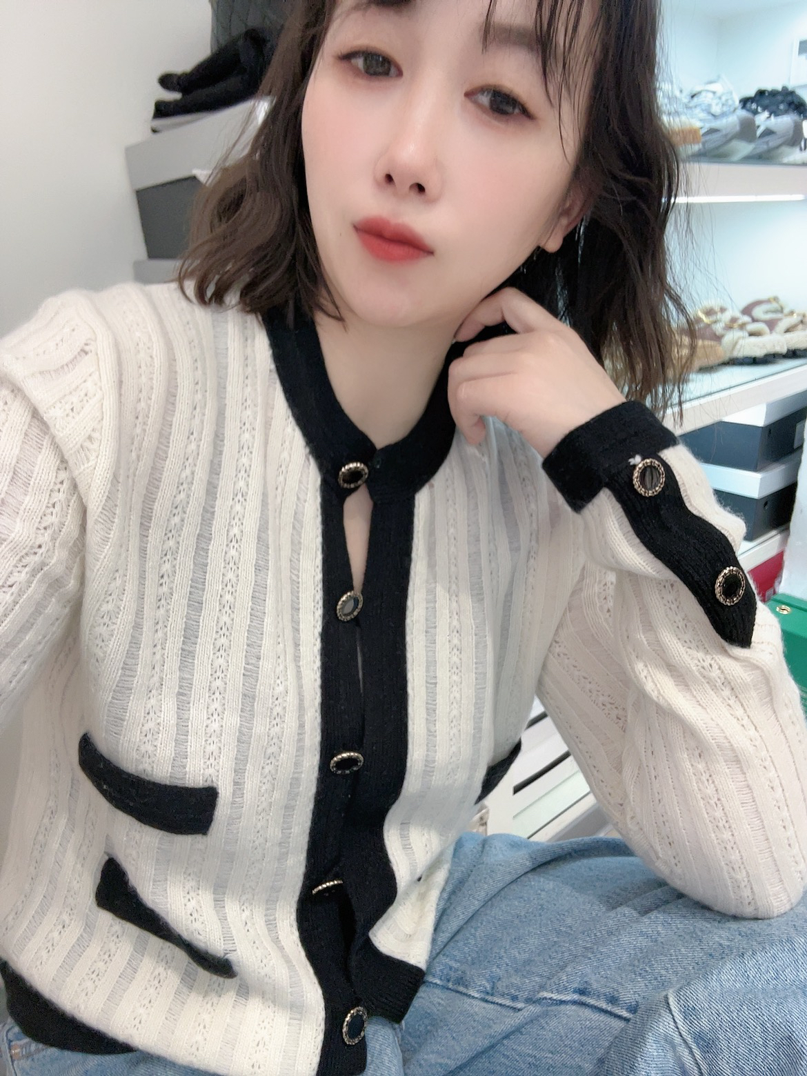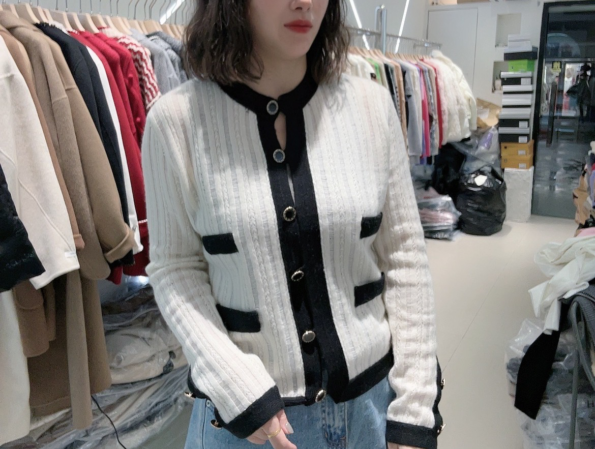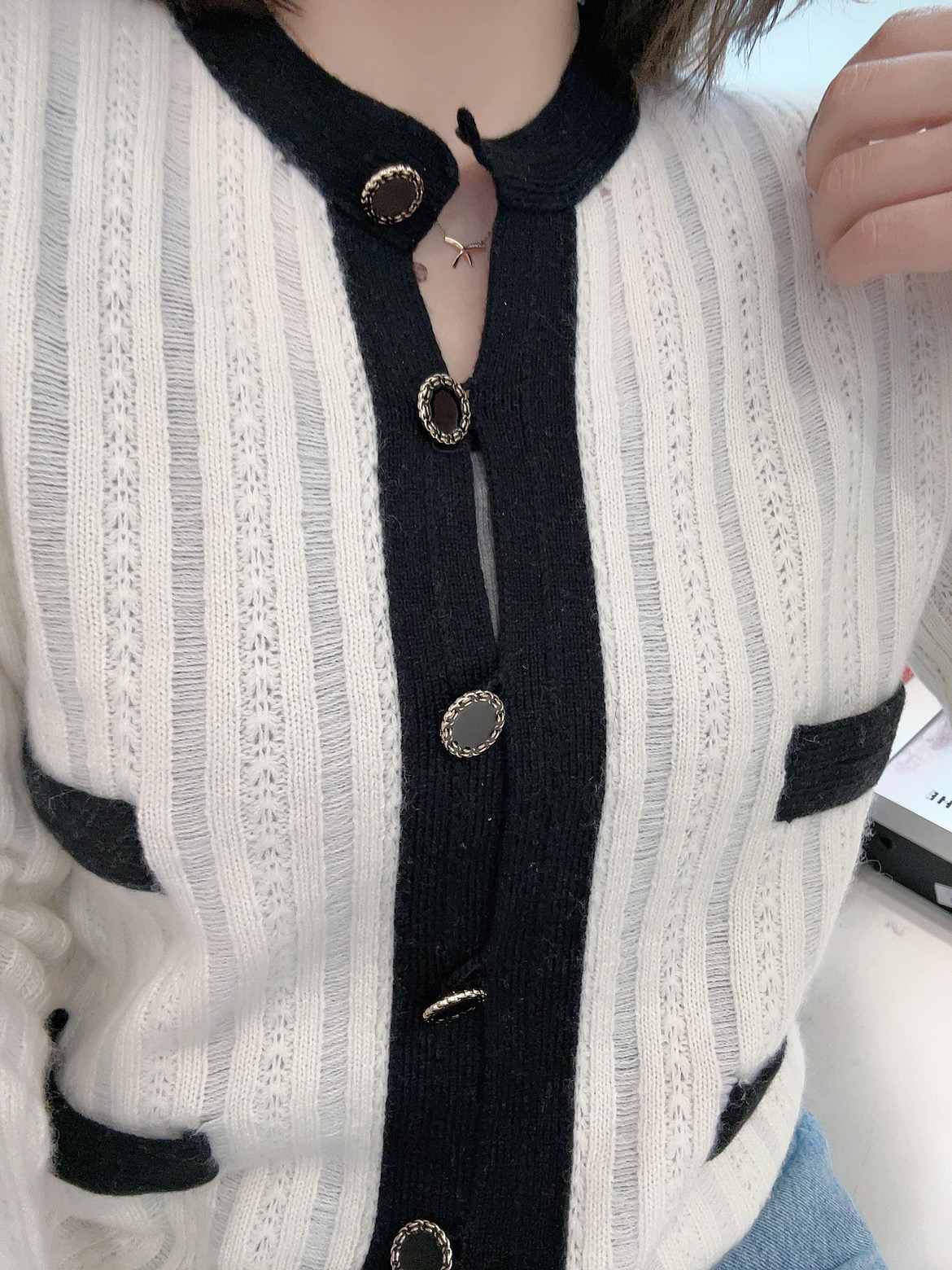 小香风 早春 气质百搭薄款洋气减龄黑白撞色针织山羊绒开衫外套女