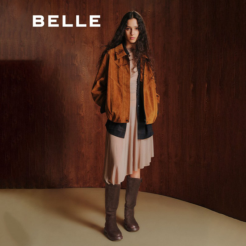 百丽女靴子复古堆堆长靴西部靴冬季2025新款厚底高筒靴E6G1 E6G1D