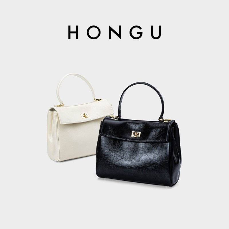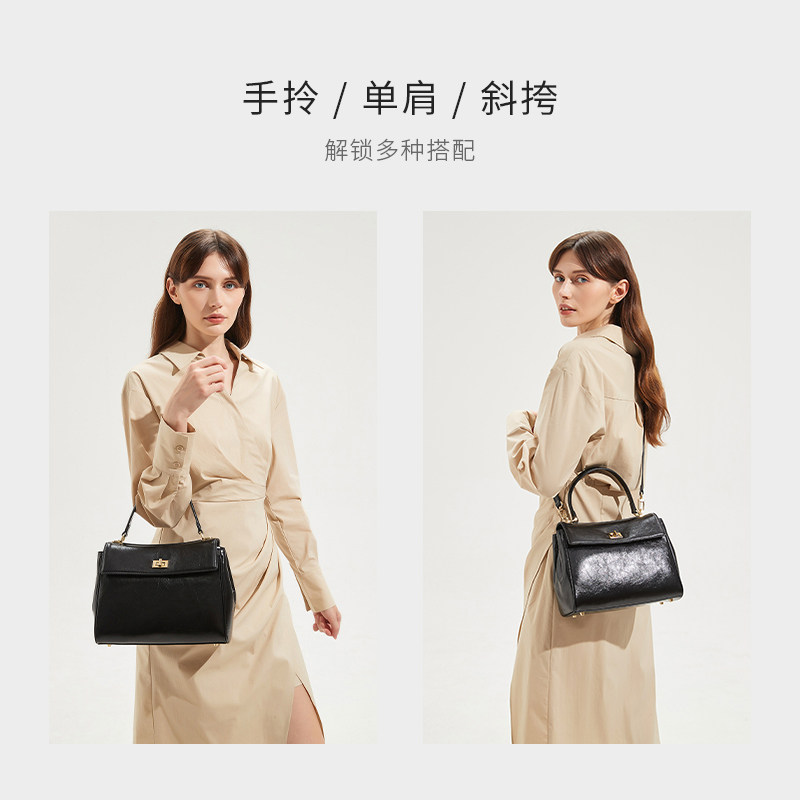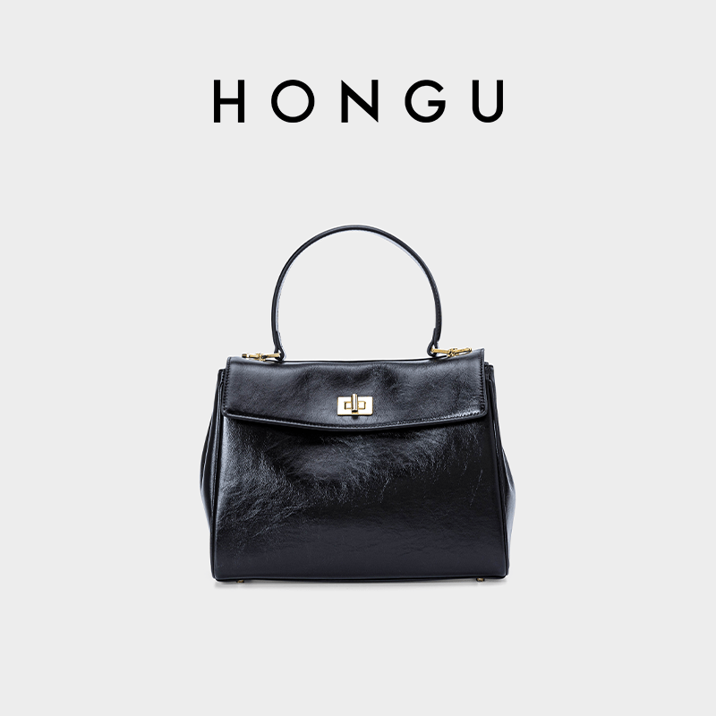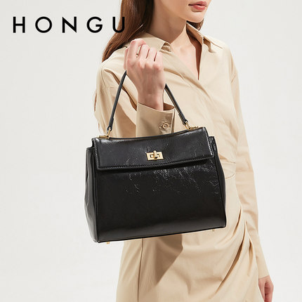 红谷女包油蜡牛皮通勤手提包高级感大容量单肩包
