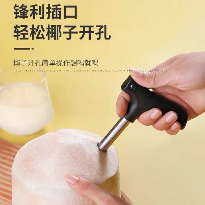 不锈钢开椰子神器椰子开孔器开椰器椰青开壳工具椰子钻打孔开盖器