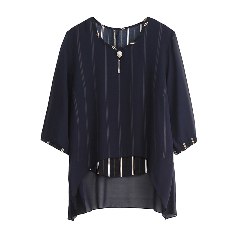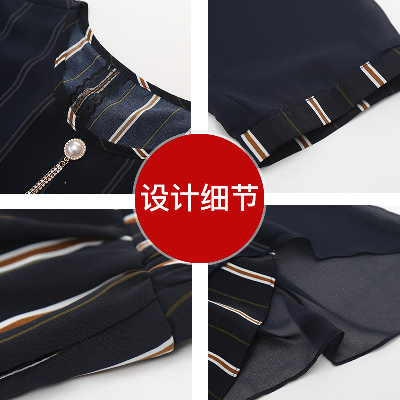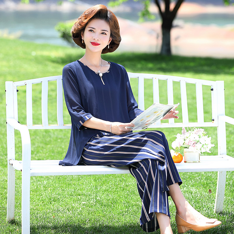 妈妈大码短袖T恤中年女装夏装洋气薄款中老年气质雪纺上衣服套装