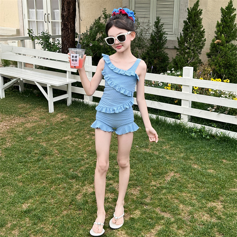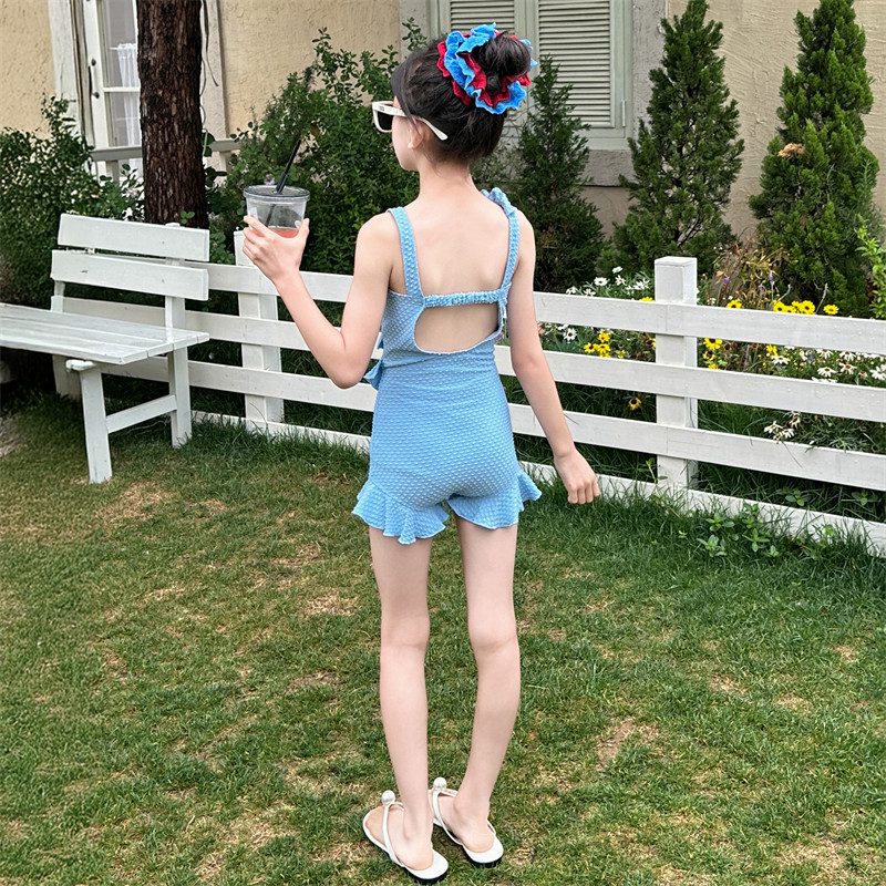 女童泳衣夏季2026新款儿童高颜值连体泳装大童女孩网红吊带游泳衣