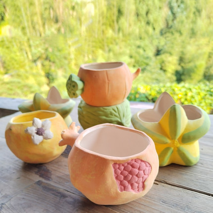 多肉花盆陶瓷创意多肉植物可爱个性卡通小号简约手绘网红紫砂粗陶