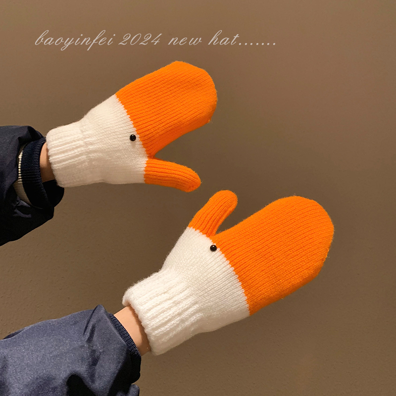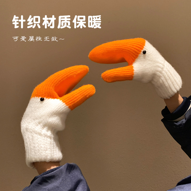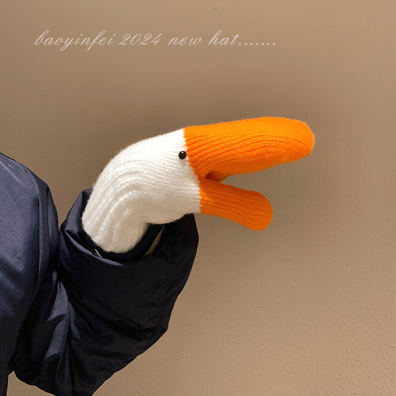 手工搞怪天鹅针织毛线手套女秋冬季可爱连指保暖加绒加厚防寒学生