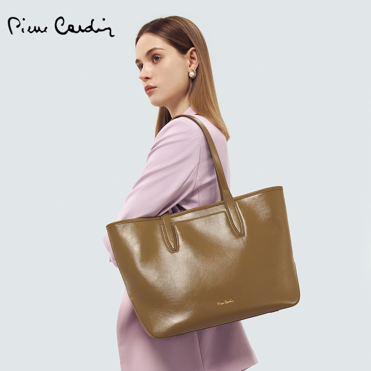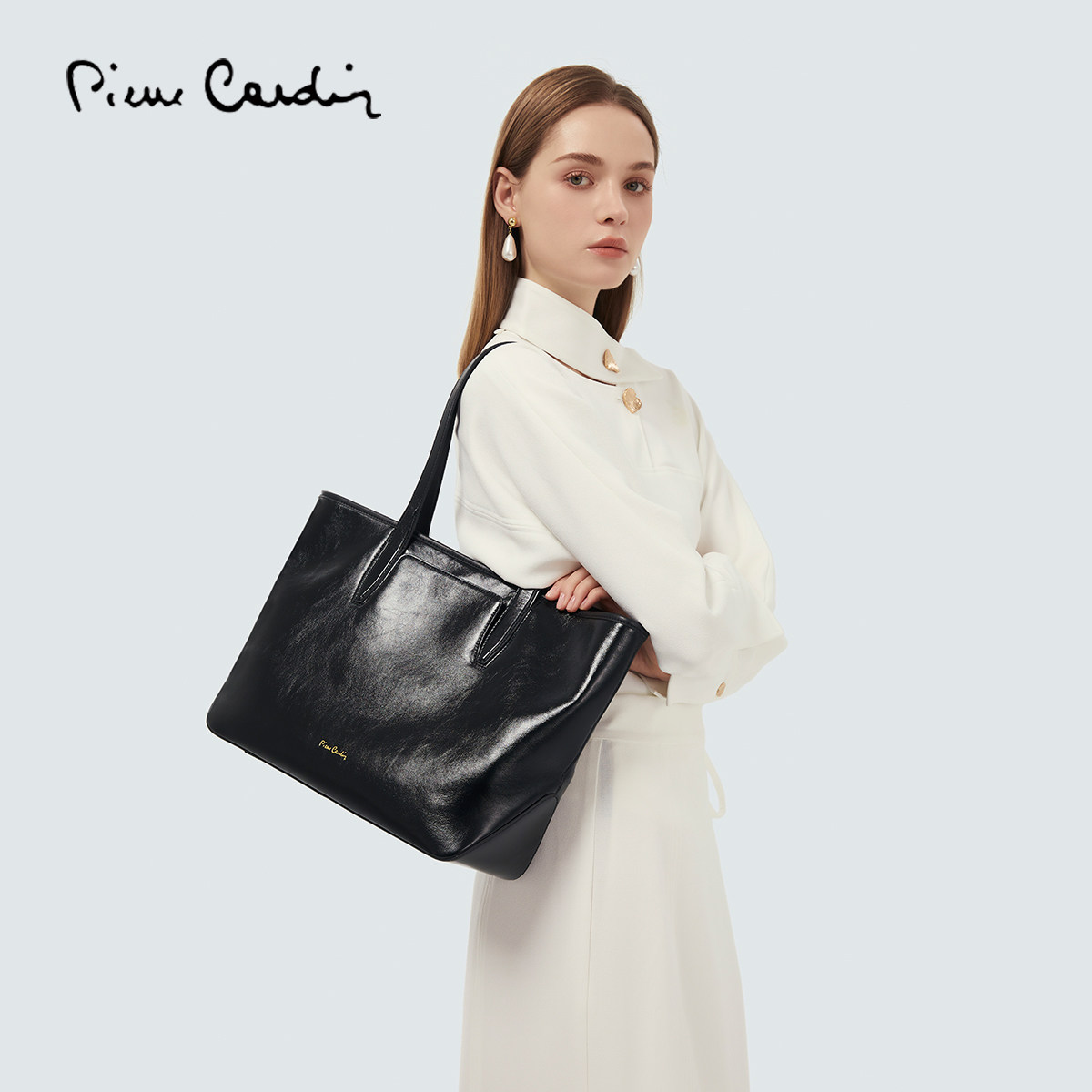 皮尔卡丹女包包大容量托特包头层牛皮单肩通勤百搭休闲送女友礼物
