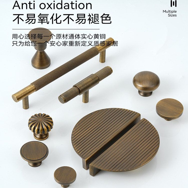黄铜拉手复古铜色美式柜门抽屉衣柜新中式仿古法式单孔厨柜铜把手