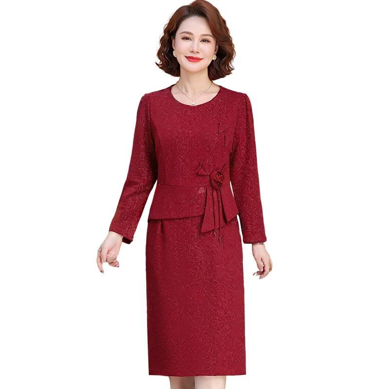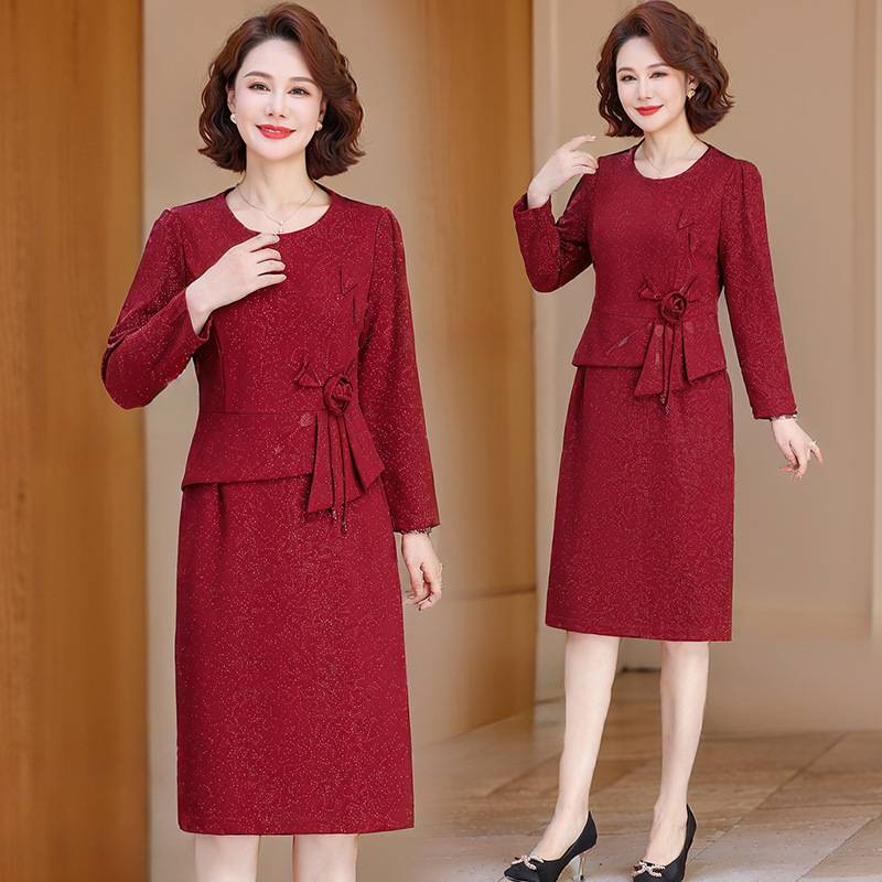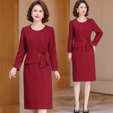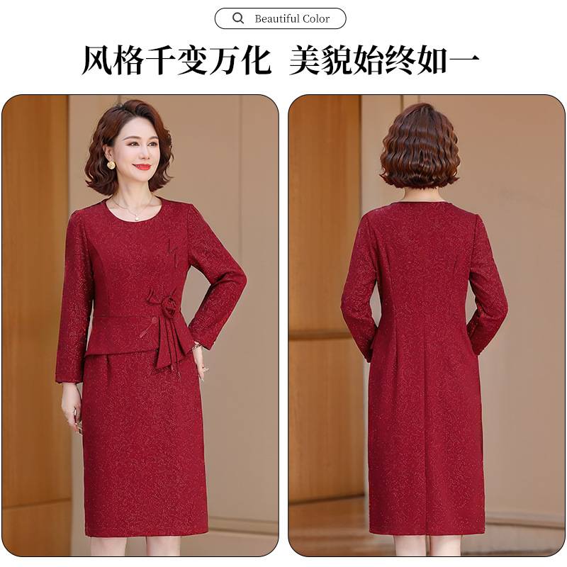 中老年妈妈装春秋婚宴礼服拼接假两件2025新款贵夫人连衣裙婚宴装