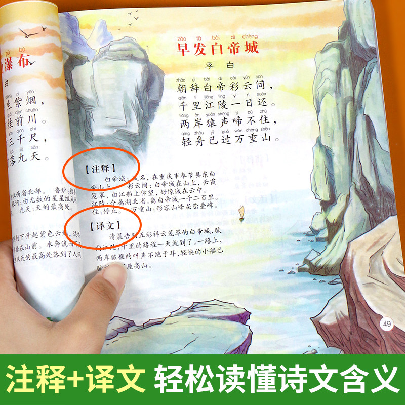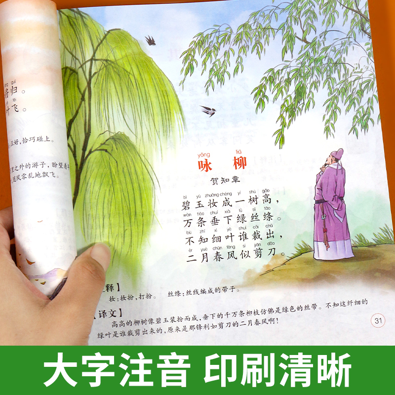 古诗三百首小学生必背 古诗词300首1到6年级人教版正版全集完整版唐诗三百首儿童绘本注音版一二年级三四五阅读课外书必读幼儿早教