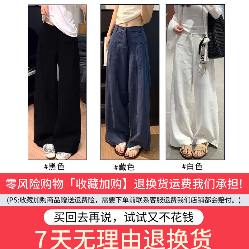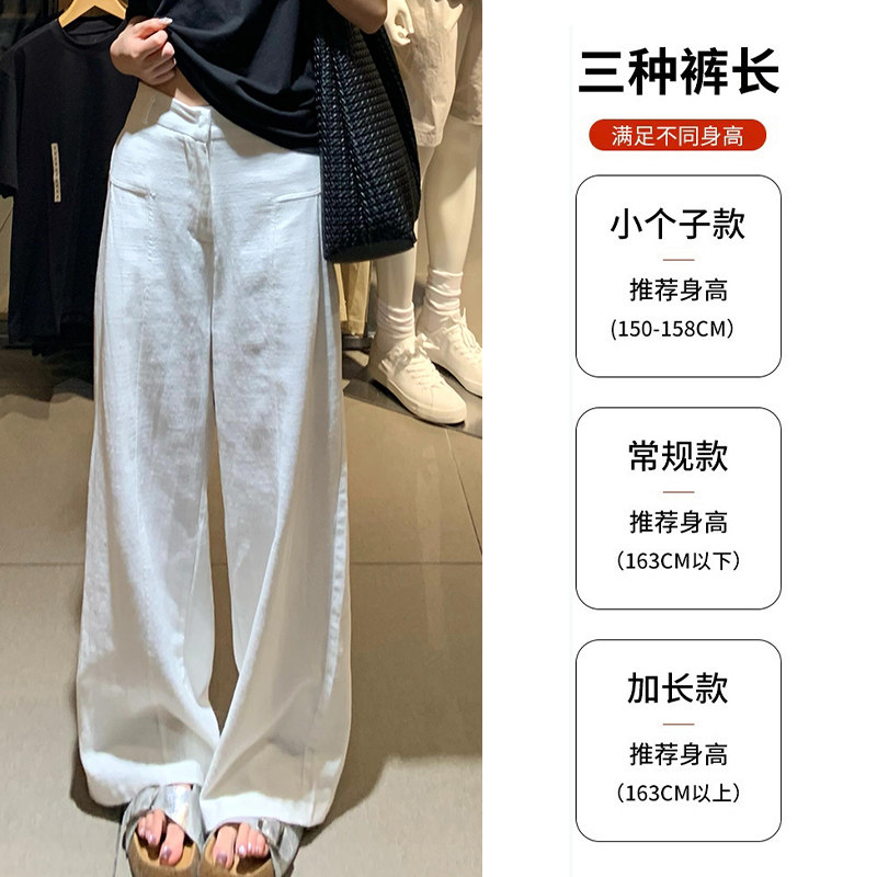 白色亚麻阔腿裤女春秋2026西装裤