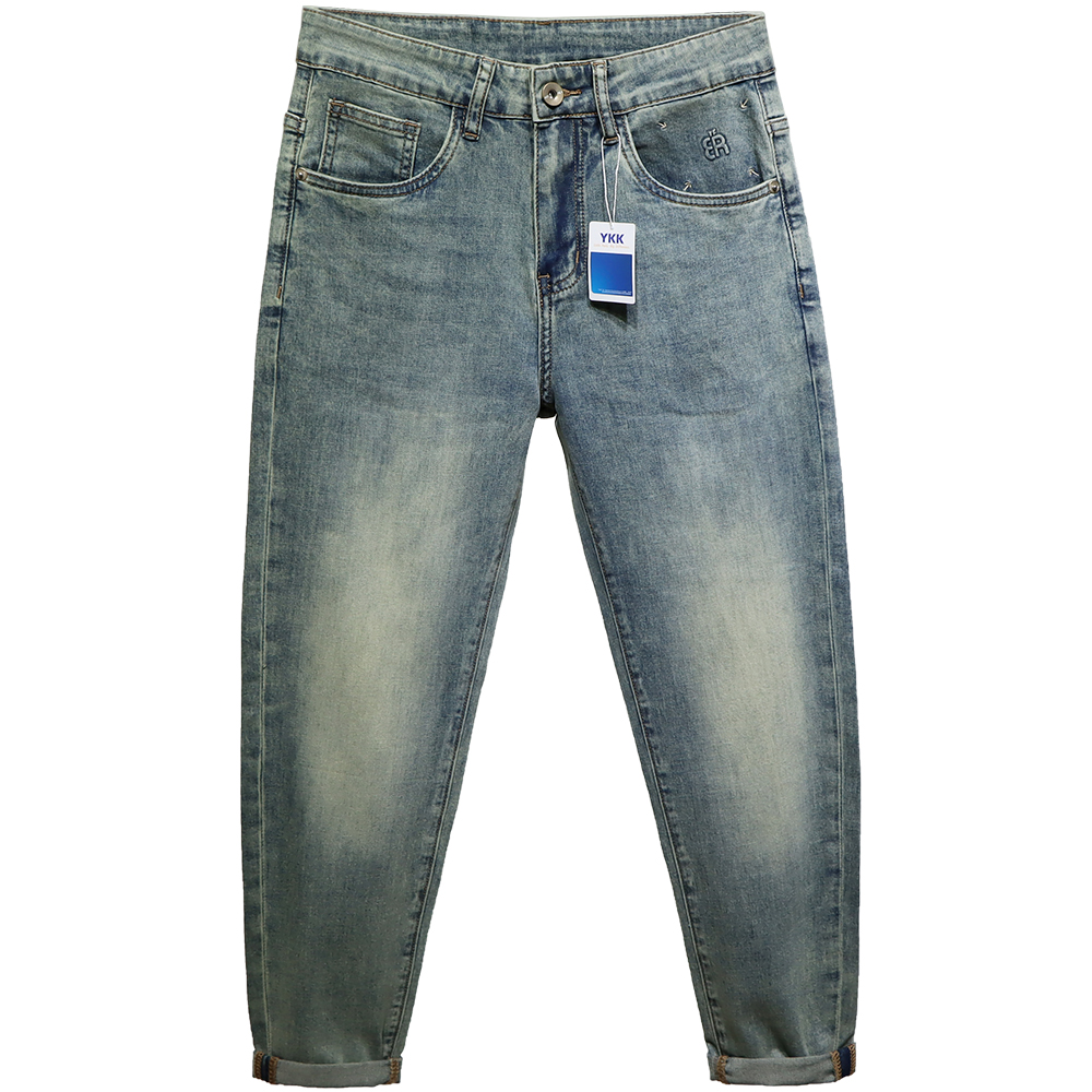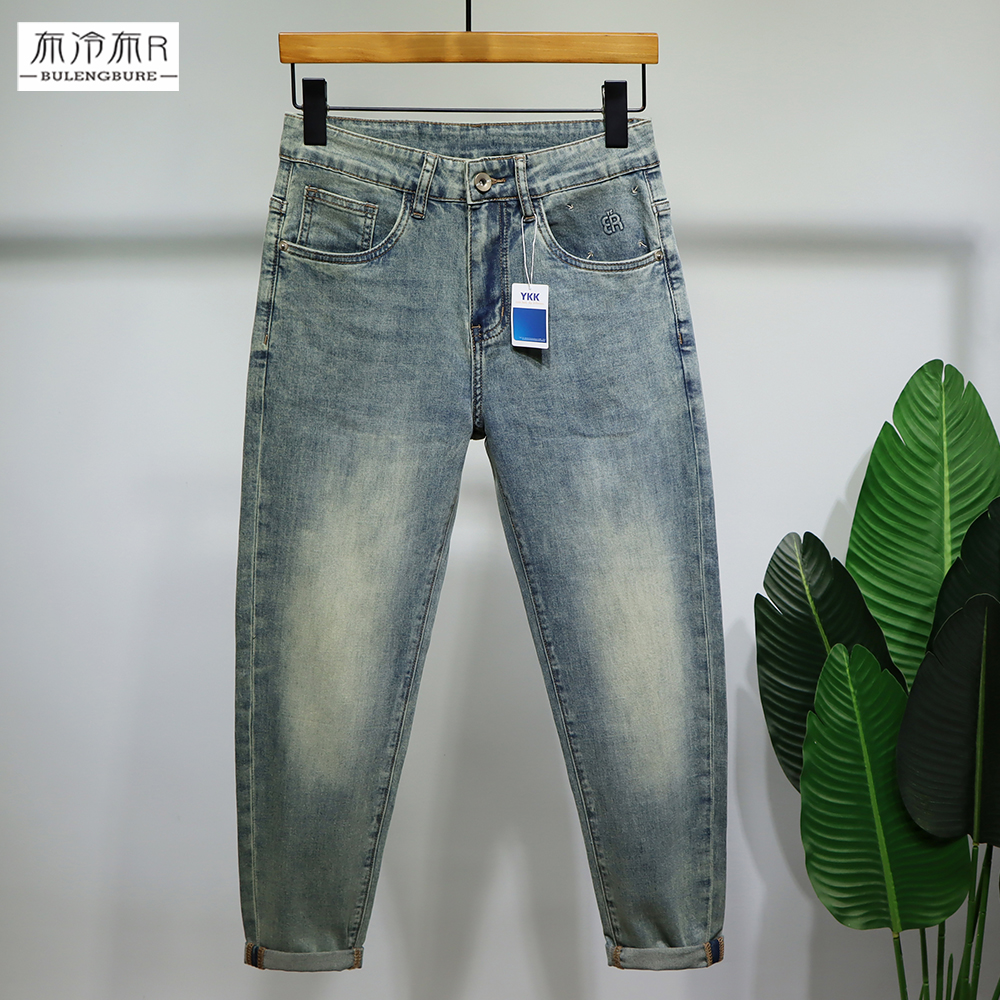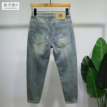 布冷布热 做旧怀旧浅蓝色牛仔裤男薄款夏季柔软透气九分小脚修身