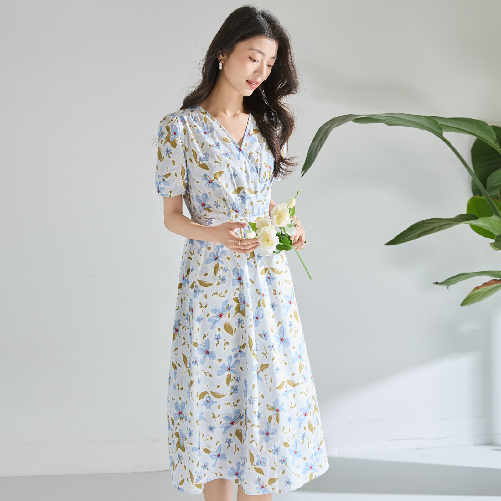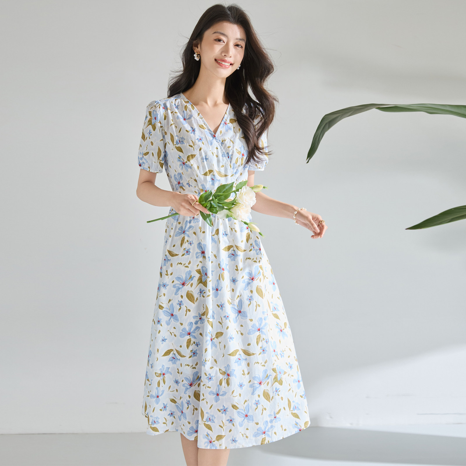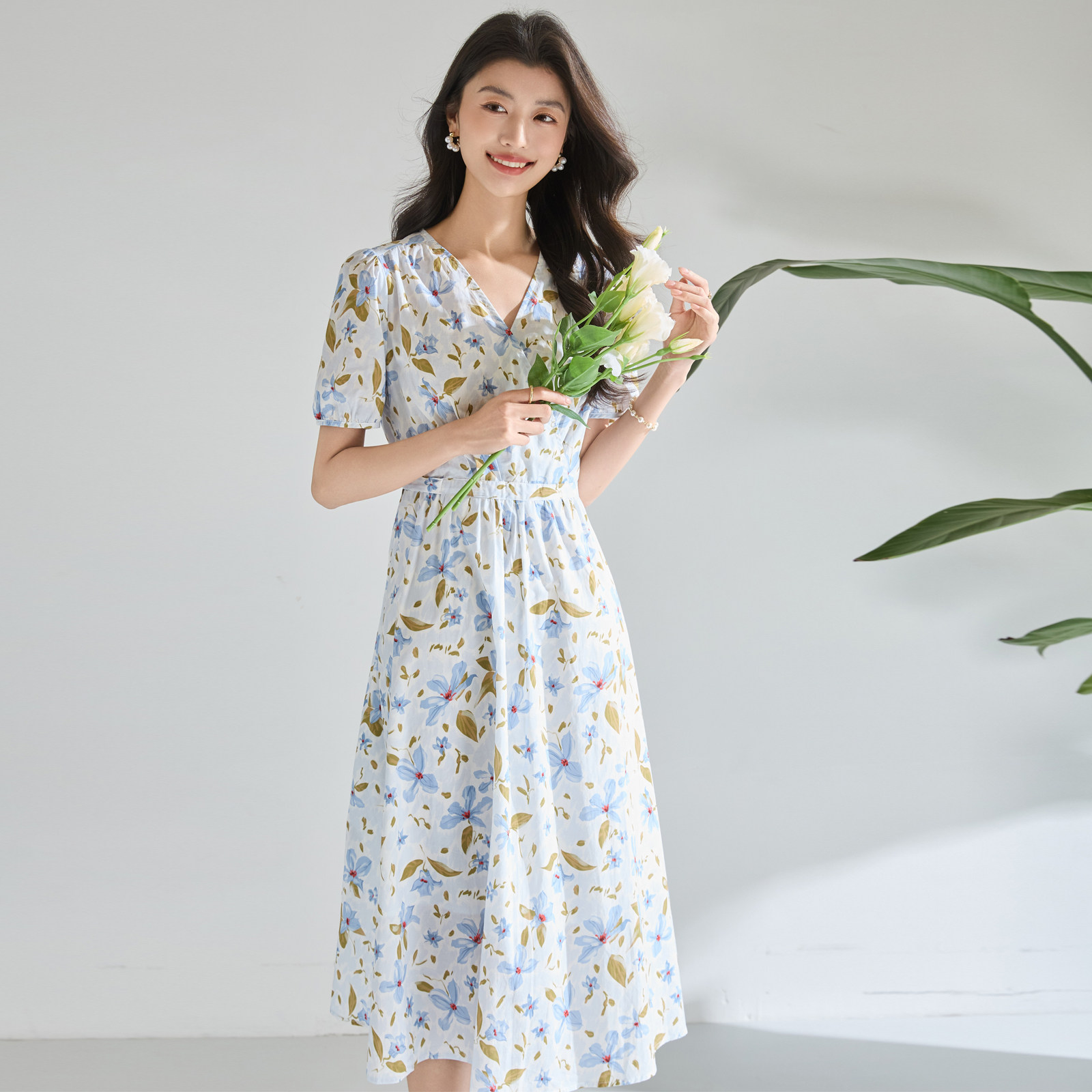 迪奥气质减龄假日风碎花连衣裙女