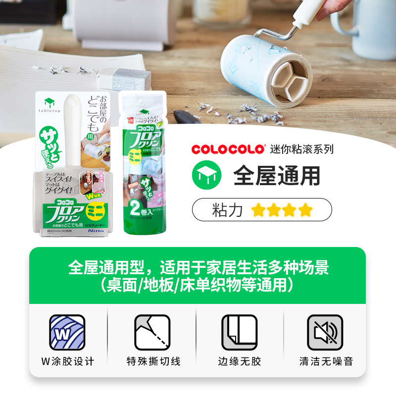 日本Nitto colocolo迷你清洁粘毛器粘尘滚筒可撕式滚撕纸替换芯