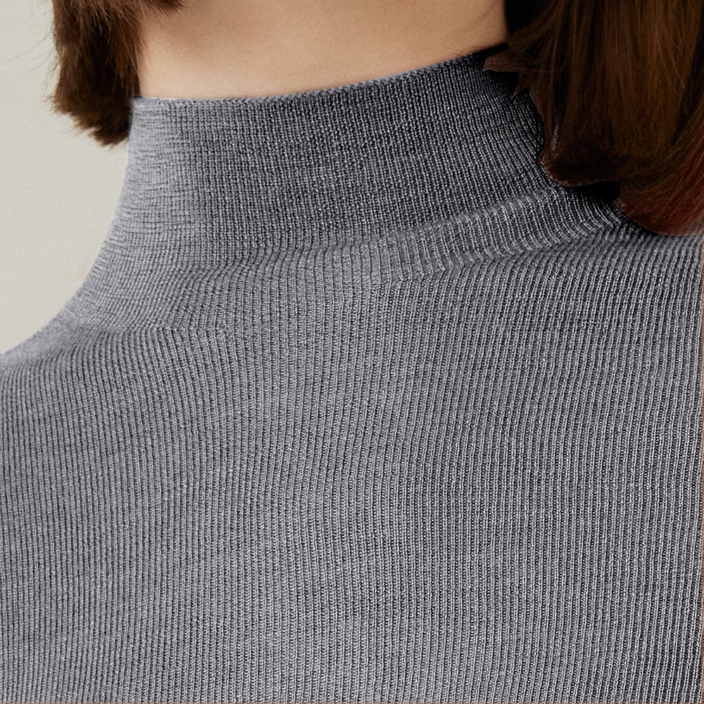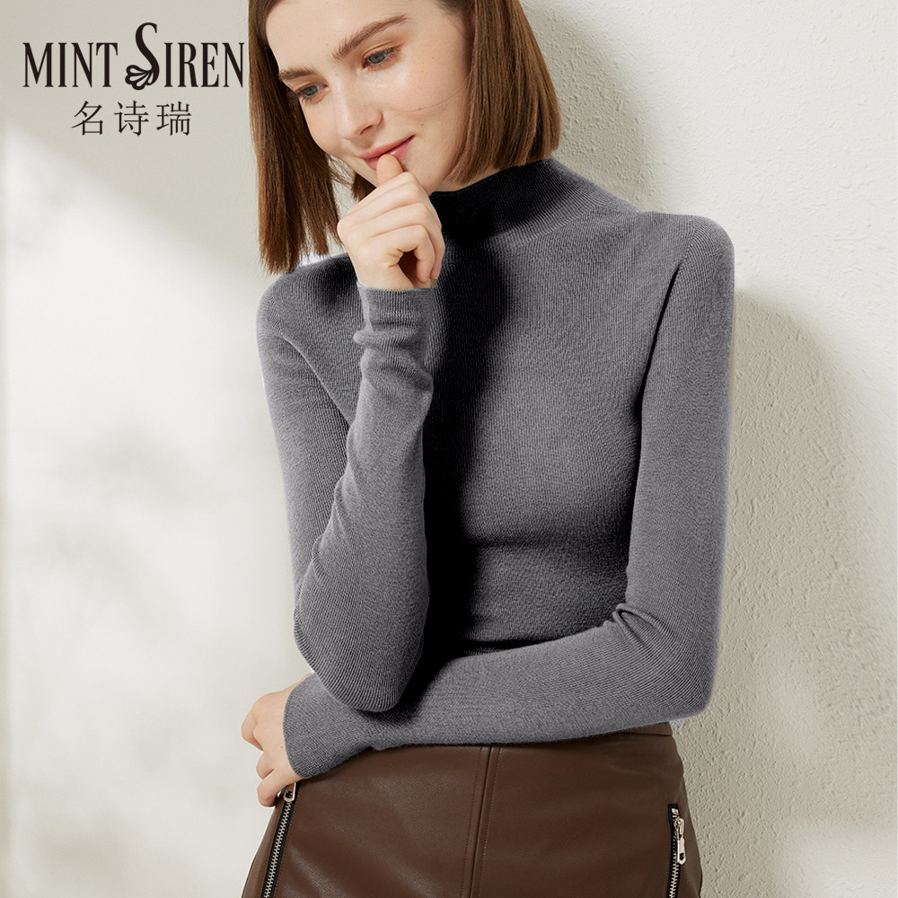 2025秋冬新品半高领长袖灰色修身内搭纯羊毛衫品质感打底毛衣女
