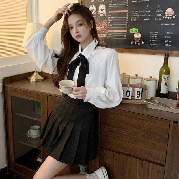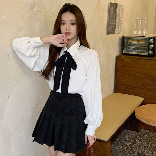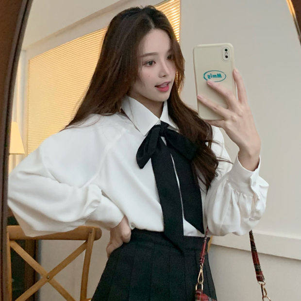 胖MM大码夏季韩版2022新款POLO领蝴蝶结百搭宽松长袖白衬衫上衣女