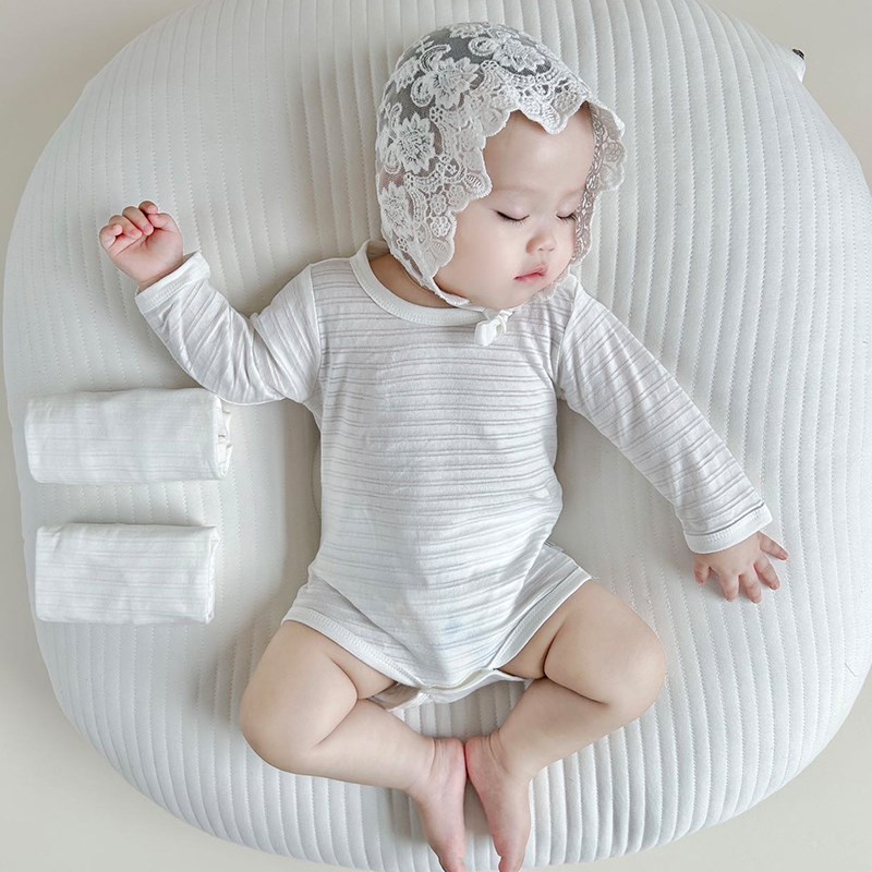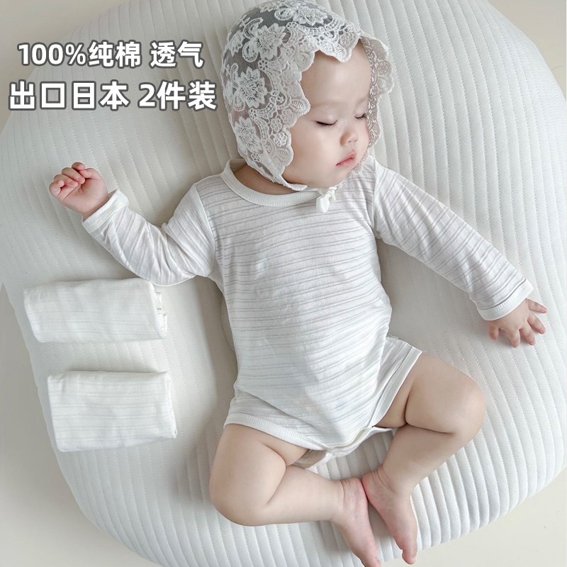 日单纯白色婴儿长袖连体衣夏季薄款全棉宝宝三角包屁哈衣秋装打底