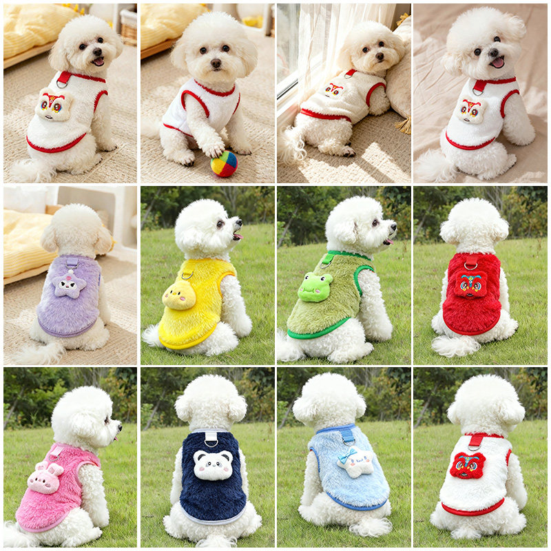 狗狗衣服新款可牵引冬季泰迪幼犬冬天保暖背心加绒加厚两脚衣小狗