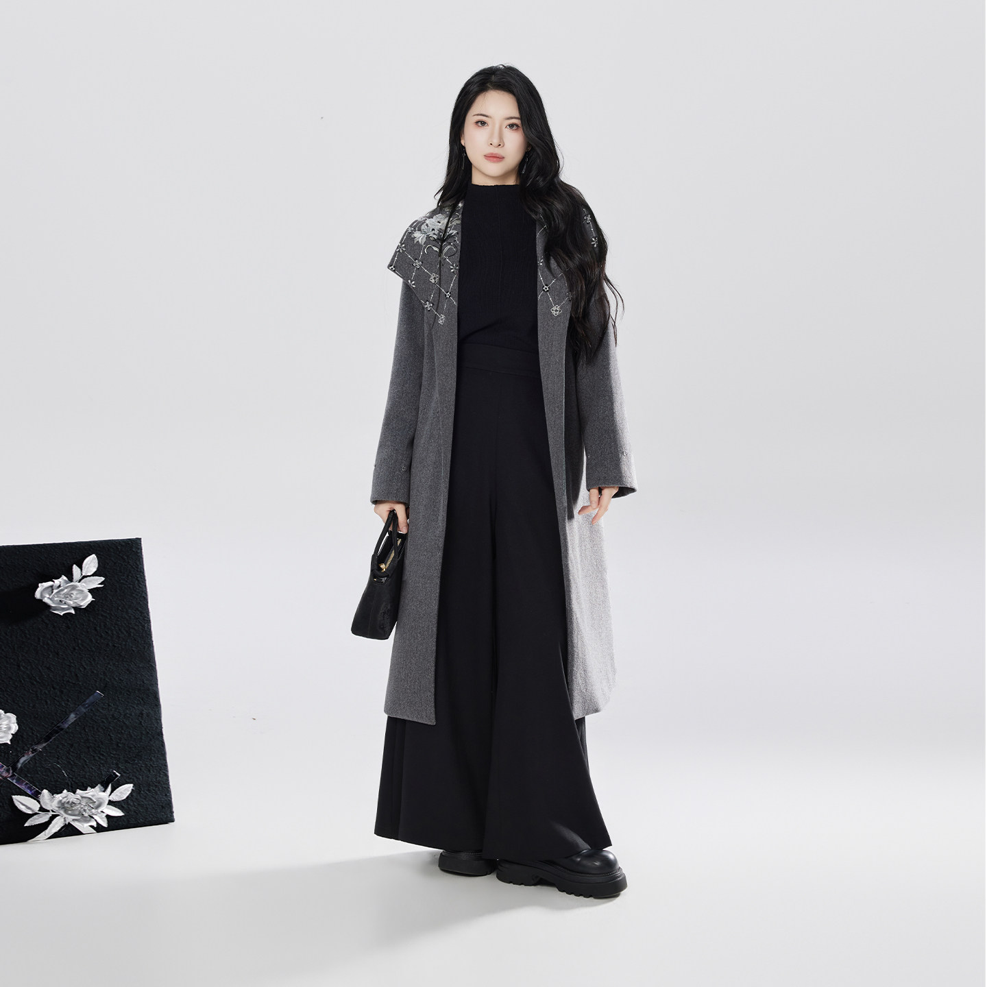 织造司[叙暮]新中式灰色大衣女士外套上衣冬天配大衣的裙子连衣裙