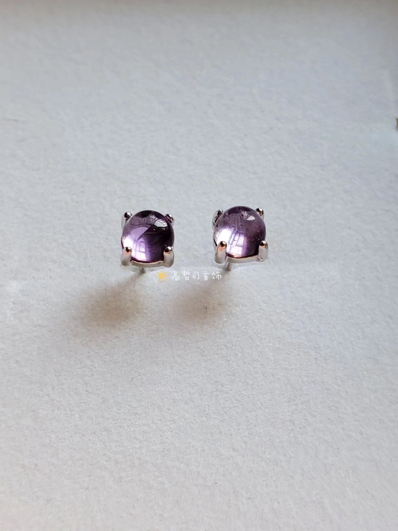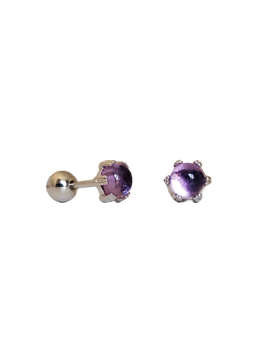 天然紫水晶 4毫米素面 通体S925纯银螺丝耳钉耳针 2种可选