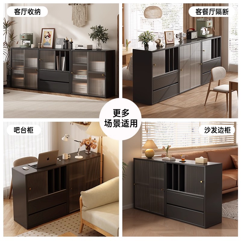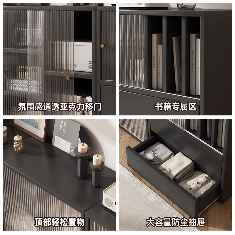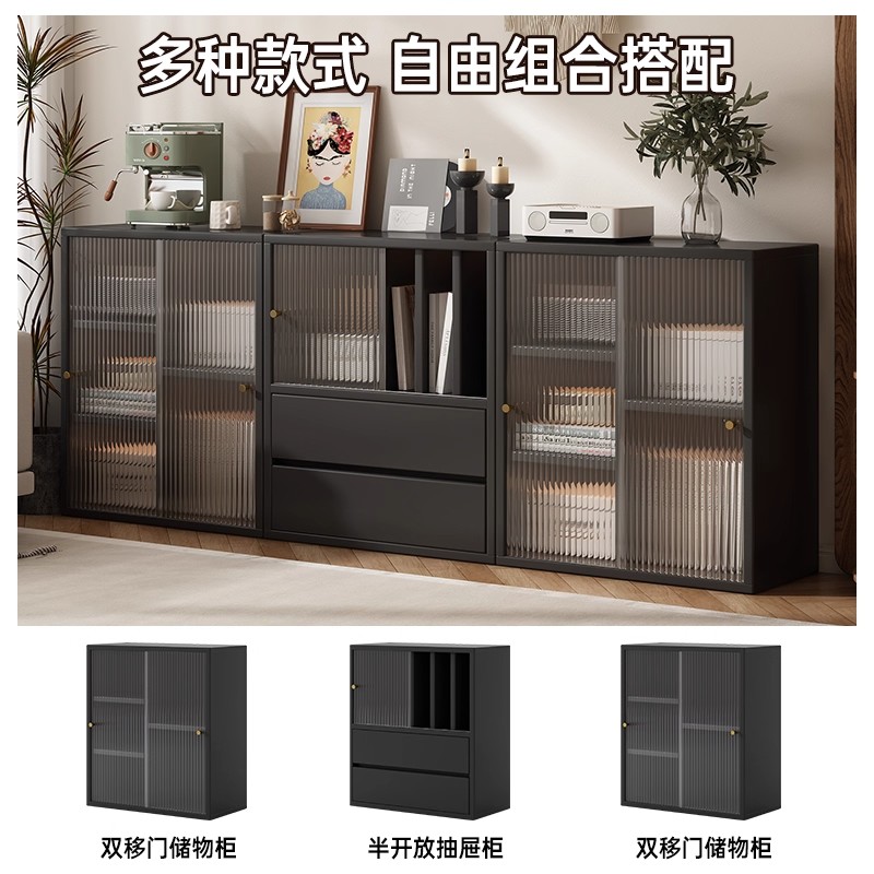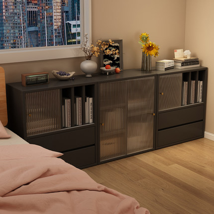 实木书柜客厅靠墙书架置物柜黑色斗柜储物柜收纳矮柜落地组合柜子