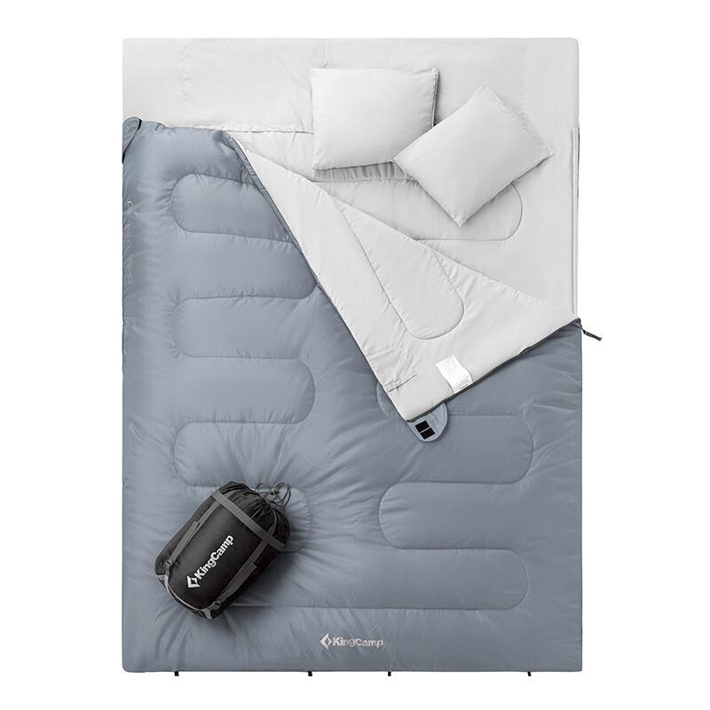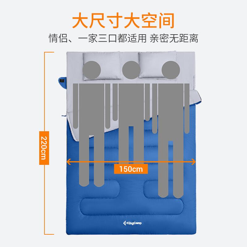 KingCamp户外野营双人带枕睡袋便携可拆分加宽加厚羽绒棉成人睡袋