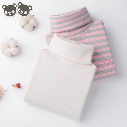 女童高领打底衫纯棉加绒加厚保暖长袖T恤儿童白色上衣女大童秋衣