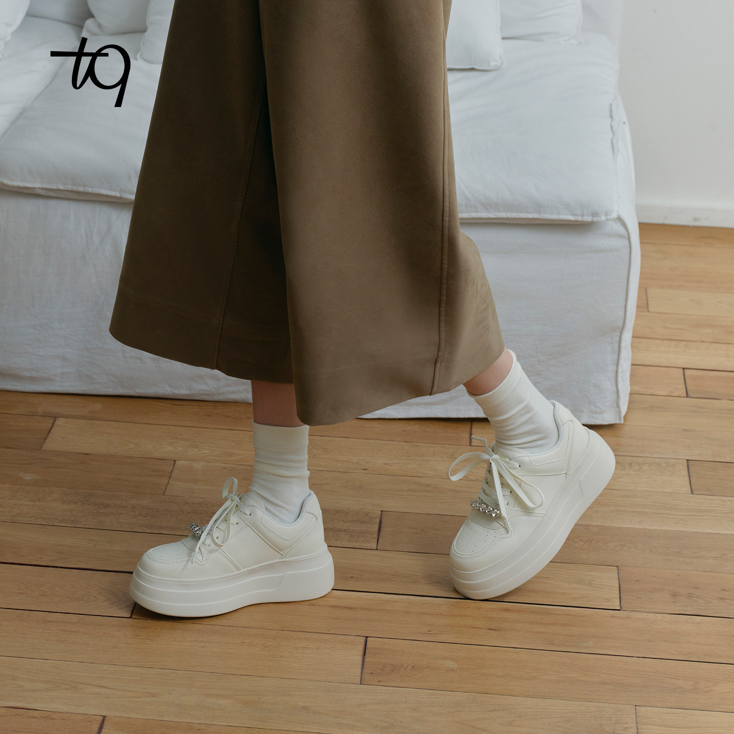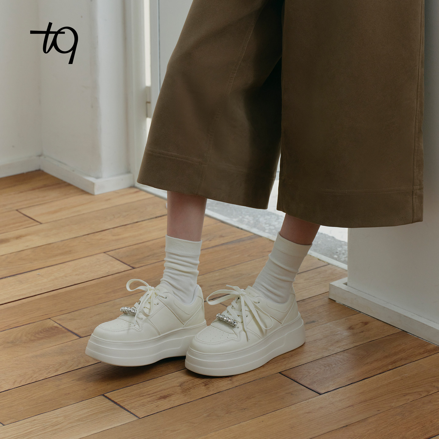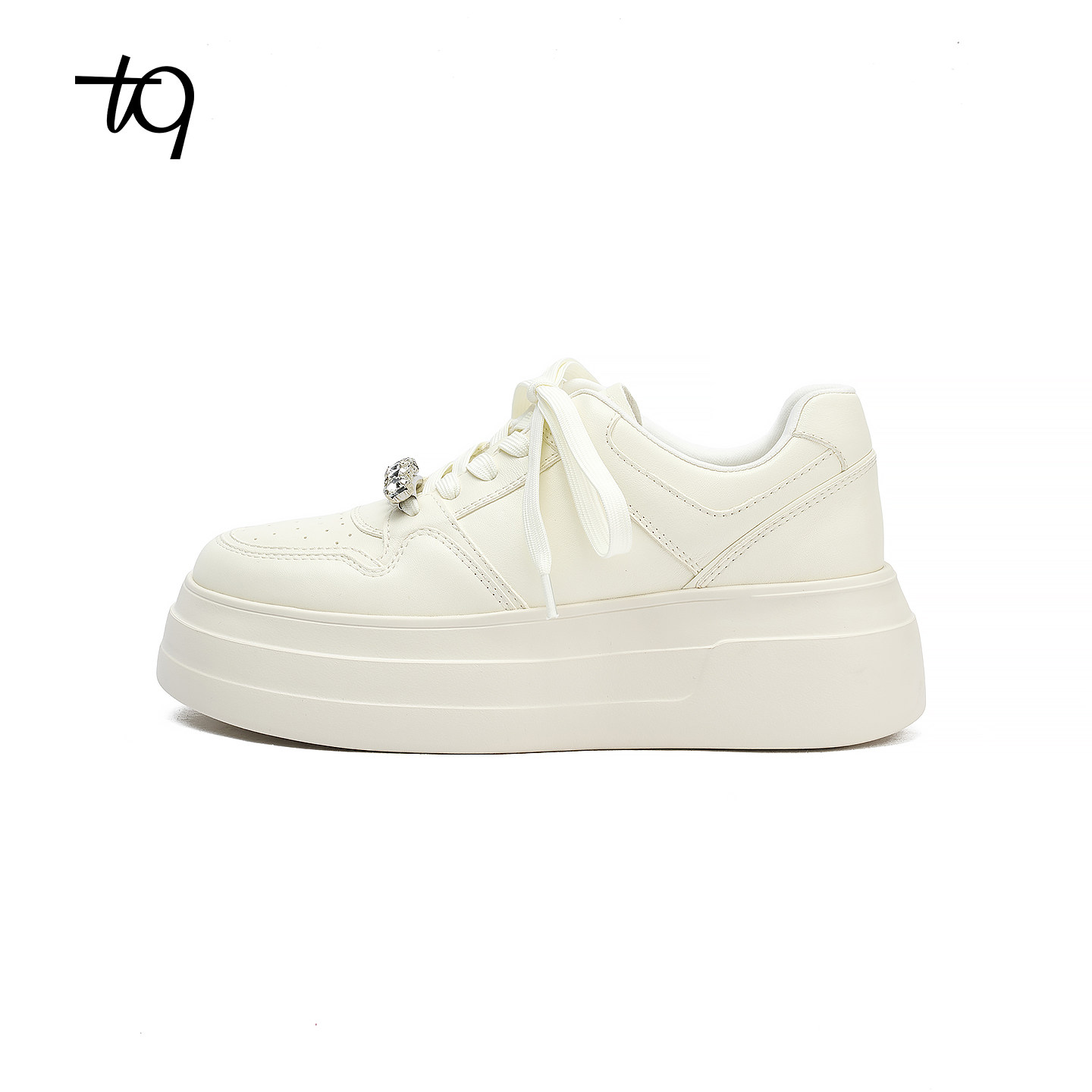 Talitaqoom2026春季新款白色厚底休闲系带板鞋百搭舒适小白鞋tq女